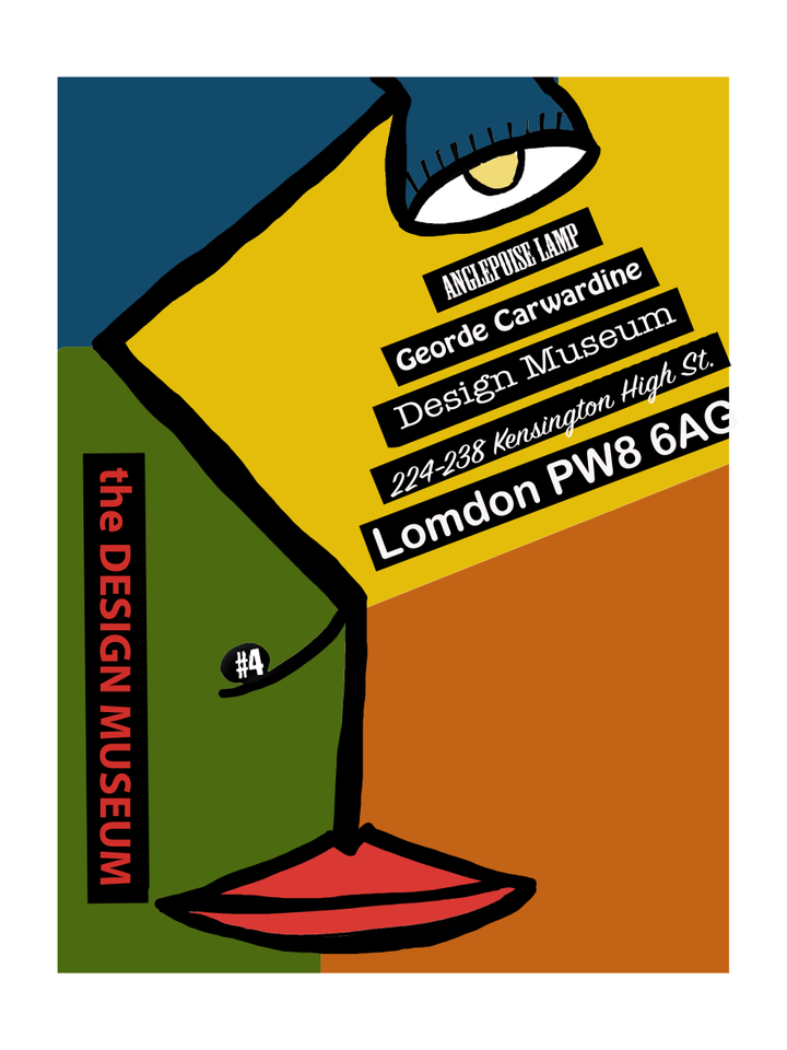 ロンドン留学中の学校の授業で作成しました。美術館のロゴと住所を入れること、そして電気スタンドの絵が配られ、それを元にデザインしました。電気スタンドを見ていると人の顔に見えてきたため、ライトの部分を目にし、デザインしました。ありきたりではなく独創的に表現しました。