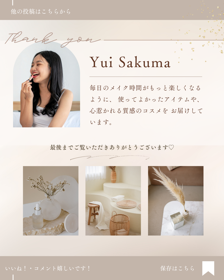 Instagramフィード投稿デザイン 20代~30代の女性に向けた スキンケアのフィード制作をしました。 ■ポイント 全体的に大人らしい雰囲気で統一しました。 表紙は、雑誌のようなデザインを意識しました。 表紙、紹介ページ(こちらには添付してません)、サンクスページを作成し クリックを促す視線誘導は右下に配置しました。