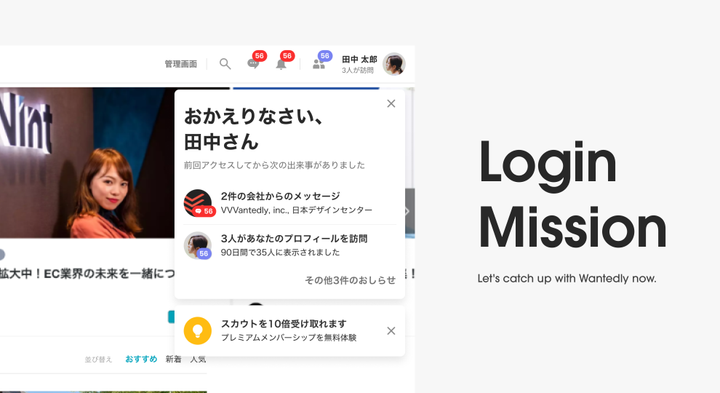 【略歴 : デザインの力でシゴトでココロオドル人を増やす】 2024 - 現在 : Engagement Product 戦略フェーズより携わる 2022 - 2024 : Wantedly Product グロース 2020 - 2022 : Wantedly Product UI刷新 , 新規サービス 0-1