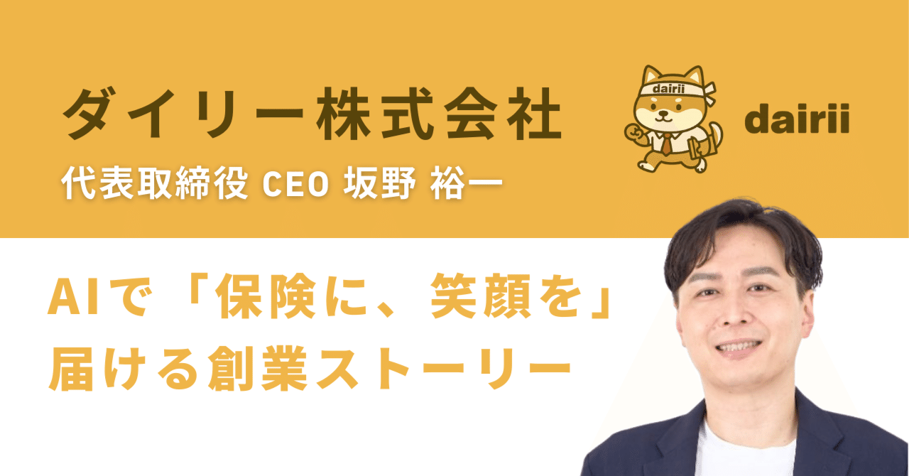 保険代理店業務をAIで「代理」するSaaSを開発中のダイリー株式会社CEO 24時間365日、保険代理店をAIで全力サポート! 現・損保募集人(事務)← DNX Ventures ← INSEAD MBA ← 損保ソリシター(三井住友海上)