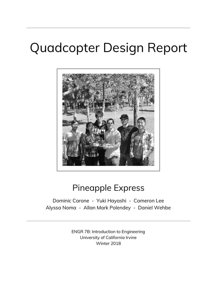 これは arduino, pixy camera を搭載したドローンを6人の工学専攻の生徒と作るプロジェクトです。私は主にSolidworks (CAD)で デザインを可視化することとQuad-copter の制作担当でした。2-7枚の写真が私とAllan Mark Polendey がSolidworks で描いたデザインです