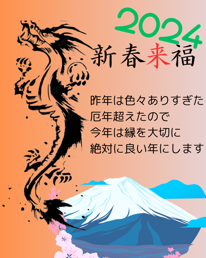 今年の干支である辰を強調、初夢で一番縁起がいいとされている富士山を取り入れ簡易的な年賀状の作成を行いました