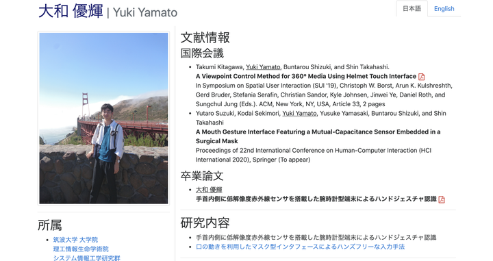 筑波大学理工情報生命学術院システム情報工学研究群情報理工学位プログラム博士前期課程1年次 Interactive Programming Laboratory所属