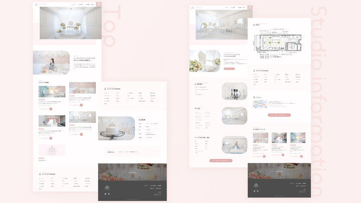 福岡・大阪にてセルフフォトスタジオを運営されている、シンデレラフォトスタジオ様の新規ホームページを制作させていただきました。 ▼こだわりポイント フォトスタジオの可愛らしい世界観を、Webサイト上でも表現し、Webサイトを見てくださったお客様にこのスタジオかわいい!ここで撮影したい!と思ってもらえるように、細部までこだわって制作しました。 ご依頼いただいた当初は、 1ページで良いとのことでしたが、スタジオを複数お持ちでそれぞれコンセプトや設備・間取りなどが違いましたので、スタジオごとのページ作成をご提案させていただきました。 また、今回はご予算等の都合上、フルオーダーメイドのデザインではなく、STUDIO公式の有料テンプレートを使用して制作させていただきました。 ちなみに、今後もスタジオが増える予定とのことでしたので、ページを増やすときの更新マニュアルに加えて、Zoomにて更新方法をレクチャー&その録画をプレゼントさせていただきました。 ホームページは作って終わりではなく、作ってからがスタートですので、アフターフォローもしっかりさせていただいております! Webサイトを作りたいけれど、できる限りコストを抑えたい方は、STUDIO公式のテンプレートを使用したプランであれば、格安にてご提供させていただいておりますので、ご要望に添える可能性がございます。 ご興味を持っていただけましたら、ぜひお問い合わせフォームよりお気軽にご相談ください。