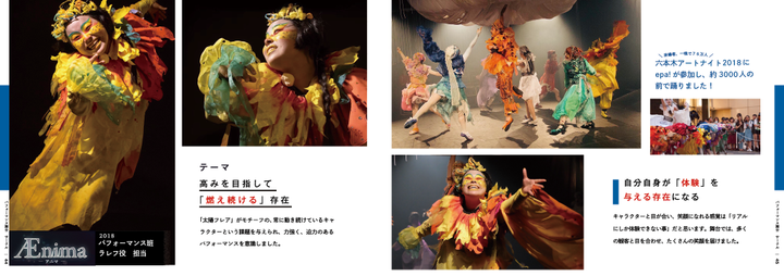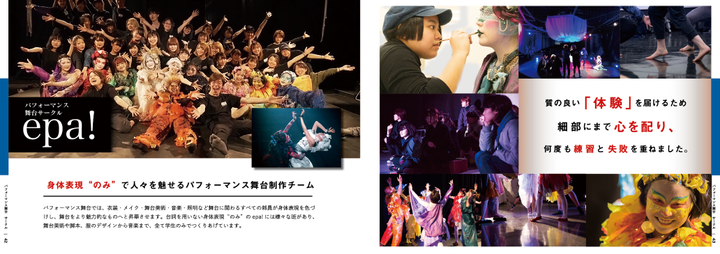 2018春公演「アニマ」でパフォーマー班、2019「ステーション」でフェイスメイク班に所属し、約40人のメンバーで一つの舞台を作り上げました。この経験を通して、自身の専念していたデジタル部分の映像だけに特化するのではなく、映像を取り巻く鑑賞しやすい空間作りまで作品制作の視野に入れ、作り込むようになりました。