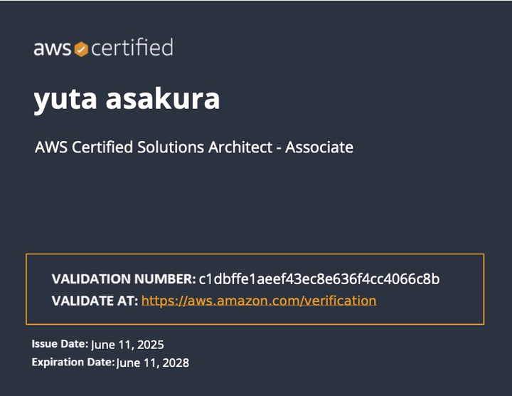 実務でAWSを活用する中で、スケーラブルなAPIの構築や、安全かつ効率的なクラウドアーキテクチャの設計など、さまざまな経験を積んできました。 この認定の準備を通じて、そうした実践的なスキルを改めて整理し、知識の穴を埋めながら、より深くベストプラクティスを学ぶことができました。 この資格は、単なるバッジではなく、これまで取り組んできた現場の経験が確かな形で証明されたこと、そして自分自身の成長を実感できた大きな一歩だと感じています。
