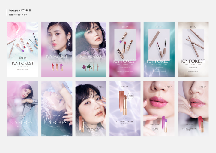 OPERAの22SSコレクション『 ICY FOREST』のSNS投稿用画像を作成しました。 画像の例はInstagramのストーリーズ用の画像です。これ以外にも、Instagramのフィード投稿用画像、Twitter投稿用画像などを作成しています。