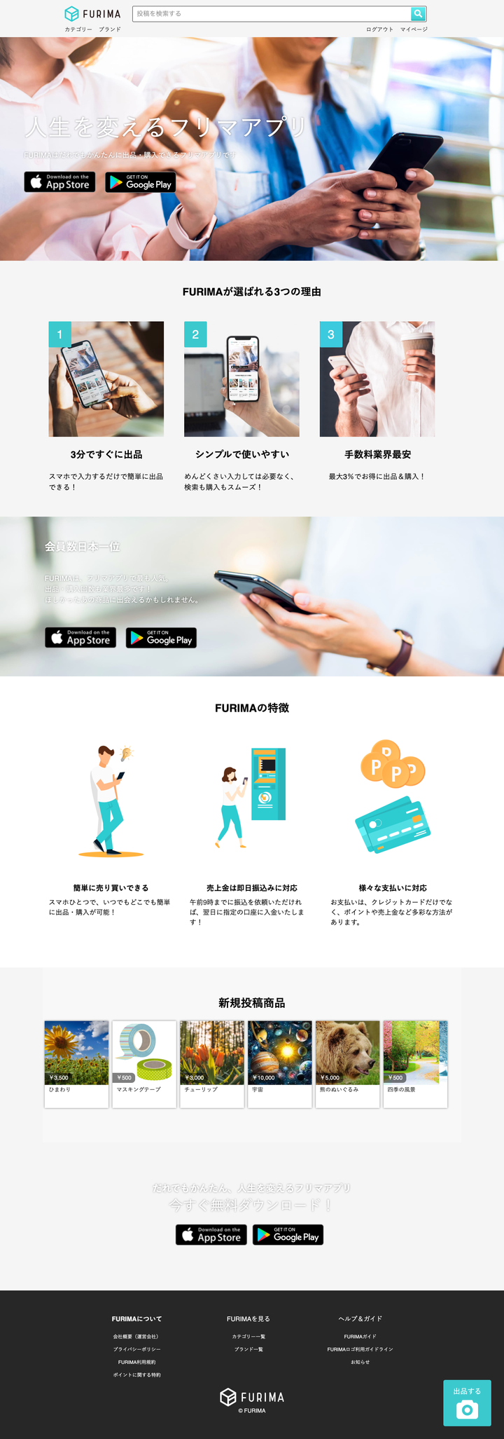 概要 テックキャンプの最終課題にて作成したアプリケーションを紹介します。また本資料では、自身で実装した箇所、および開発を通じて得られた経験についても紹介します。 アプリケーション情報 アプリケーション概要 フリーマーケットのアプリケーションを作成しました。ユーザーは、サイト内で任意の商品を出品でき、また他のユーザーが出品した商品をクレジットカードで購入できます。 接続先情報 URL http://54.168.66.180/ ID/Pass ID: admin Pass: 73c テスト用アカウント等 購入者用 メールアドレス: ssss@zzz.gmail.com パスワード: 05161212s 購入用カード情報 番号: 4242424242424242 期限: Fri Jan 24 2020 00:00:00 GMT+0900 (日本標準時) セキュリティコード:111 出品者用 メールアドレス名: aaaa@yyy.gmail.com パスワード: 12121985a Githubリポジトリ https://github.com/kawayu-yu/fleamarket_sample_73c.git 開発状況 開発環境 Ruby/Ruby on Rails/MySQL/Github/AWS/Visual Studio Code 開発期間と平均作業時間 開発期間:6/20〜8/30(72日間) 1日あたりの平均作業時間:5 開発体制 人数:5 アジャイル型開発(スクラム) Trelloによるタスク管理 動作確認方法 Chromeの最新版を利用してアクセスしてください。 ただしデプロイ等で接続できないタイミングもございます。その際は少し時間をおいてから接続ください。 接続先およびログイン情報については、上記の通りです。 同時に複数の方がログインしている場合に、ログインできない可能性がございます。 テストアカウントでログイン→トップページから出品ボタン押下→商品情報入力→商品出品 確認後、ログアウト処理をお願いします。 開発担当箇所 担当箇所一覧と確認方法 ● DB設計 ● 商品詳細ページ(フロントエンド) ○ 出品者用アカウント、または購入者用アカウントでログイン後、適当な 商品を選択することで商品詳細ページへ進めます。 ● 商品詳細表示(バックエンド) ○ 出品者用アカウント、または購入者用アカウントでログイン後、適当な 商品を選択することで商品詳細ページへ進めます。 ● 商品情報編集(バックエンド) ○ 出品者用アカウントでログイン後、トップページ右上からマイページにアクセスして いただき、「出品した商品-出品中」から、適当な商品を選択することで商品詳細ペー ジへ進めます。その後、ページ中ほどにある編集ボタンを押す事で、商品を編集する 事ができます。 ● 商品についての質問・コメント機能(バックエンド) ○ 出品者用アカウント、または購入者用アカウントでログイン後、適当な 商品を選択することで商品詳細画面へ進めます。その後、ページ中ほど のコメント欄からコメントする事ができます。 各担当箇所の詳細 ● DB設計 ○ 概要 ■ 必要なテーブル、カラムの選定 ■ アソシエーションの決定 ○ 担当内容 ■ ER図の作成 ● 商品詳細ページ ○ 概要 ■ 商品名、値段、画像など、商品の詳細が表示されるページ ○ 担当内容(バックエンド) ■ 商品名、値段、画像、出品者、カテゴリーなど表示させるルーテ ィング、コントローラーの作成 ○ 担当内容(フロントエンド) ■ haml,scssを使用し、商品詳細の各項目の確認画面を実装 ● 商品情報編集 ○ 概要 ■ 出品した商品の画像、登録情報を変更できるページ ○ 担当内容(バックエンド) ■ 出品者だけが編集ページに遷移できる様にする機能の実装 ● 商品についての質問・コメント機能 ○ 概要 ■ 出品されている商品について、出品者に質問、コメントができ、 出品者も同様に回答、コメントができる機能 ○ 担当内容(バックエンド) ■ コメントを保存するモデル、コントローラ、ルーティングの作成 ■ コメントの際の、非同期通信の実装 ■ 出品者のニックネームの下には出品者とわかる様に、「出品者」 と表示される機能の実装 開発を通じて得られた知見 工夫した点 ①チームとして工夫を行った点 マークアップ作業を行った人が、そのページのバックエンド作業を行うことにしたため、作業をスムーズに進めることができました。また、疑問に思ったことは、積極的にzoomやSlackで情報の共有を図った事で、問題点がチームで共有されやすくなり、早期の問題解決につながりました。 ②個人として工夫を行った点 コメント機能において、コメントを見やすくするために、コメントのニックネームを自分のものは右に、その他のユーザーのものは左に来る様にしました。 また、コードを書く際にBEMの考え方でクラス指定を行ったことで、コードの可読性の向上に努めました。 苦労した点 ①チームとして苦労した点 開発当初、メンバー各々がマージする度にコンフリクトが起こり、解決するのに苦労しました。そのため、コンフリクトが起きた時は、どのコードを残すのか、積極的に連絡を取り合うことにしました。その後は、コンフリクトが起きてもミスなく、作業を進める事ができました。 この経験から、コミュニケーションの大切さを学びました。今後は、コミュニケーションを密にとり、仕事を進めていきたいです。 ②個人として苦