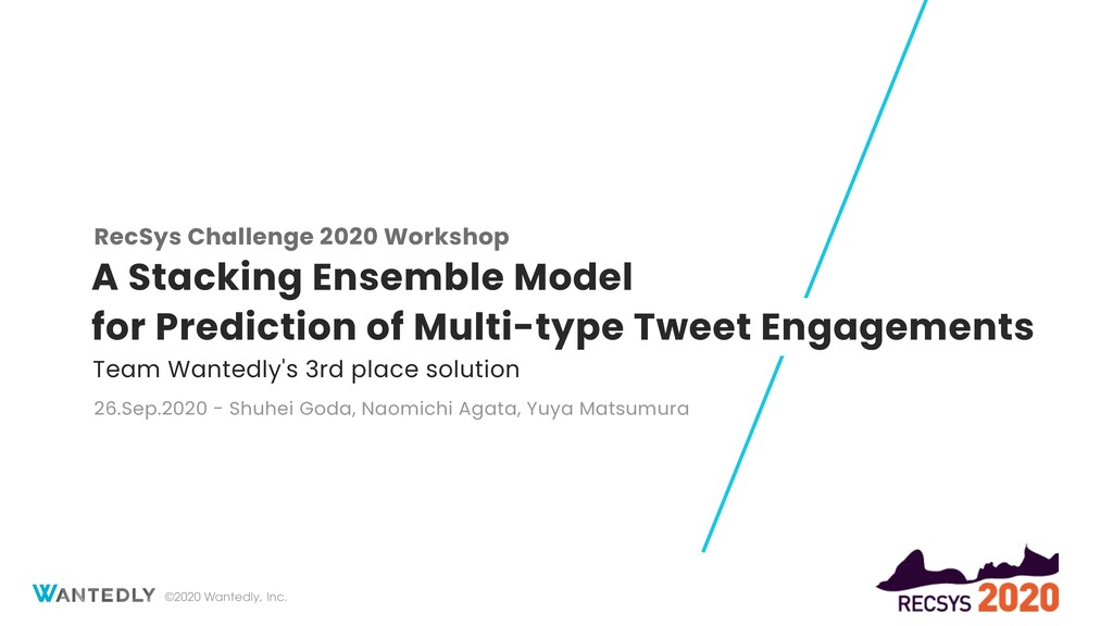 RecSys2020 の Workshop である RecSys Challenge 2020 における口頭発表の資料です。 以下の論文の内容について発表しました。 https://dl.acm.org/doi/10.1145/3415959.3415994