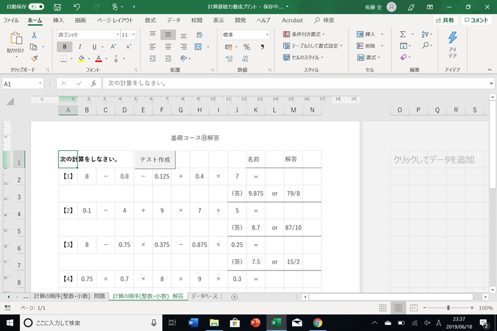 中学受験をする小学4年生や数学が苦手な中学1年生を対象にした計算基礎力を養成するプリントを作成しました。 一部VBAを用い、マクロを組んだことでより数値や演算のランダム性が高いテストにしました。 (詳細はPDFのポートフォリオをご覧下さい。)