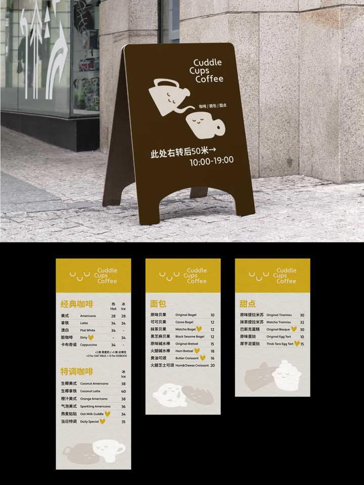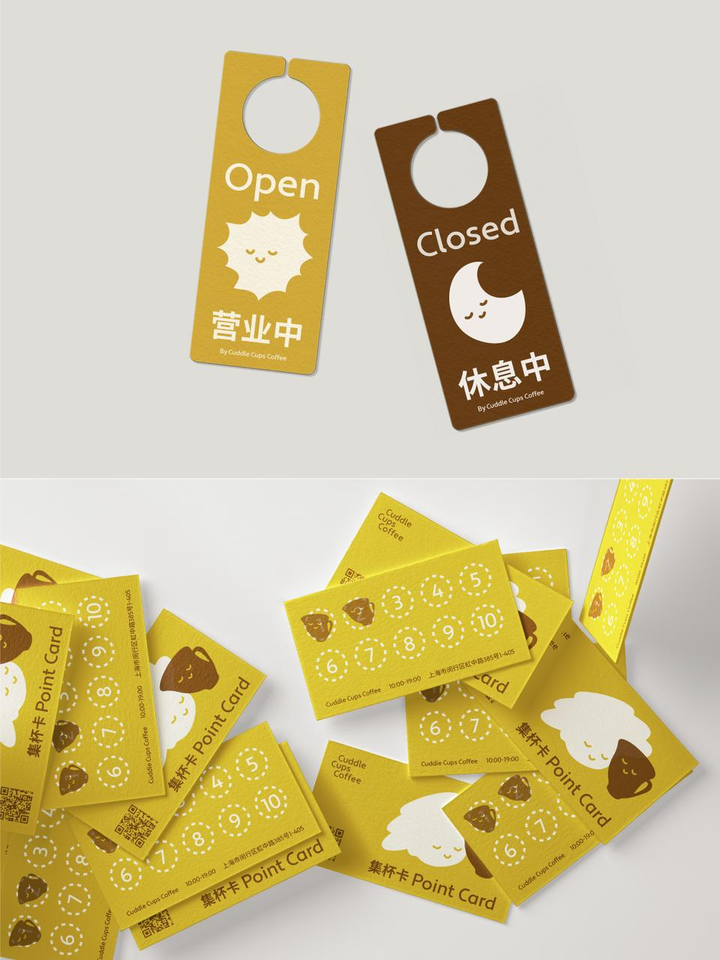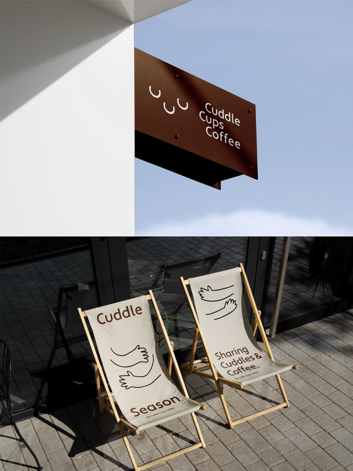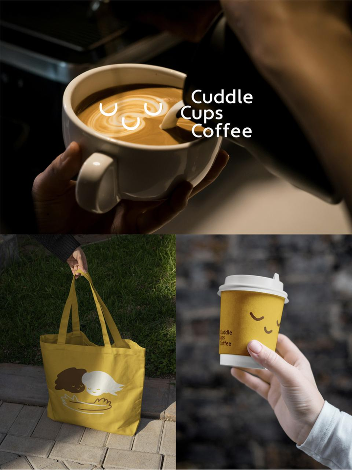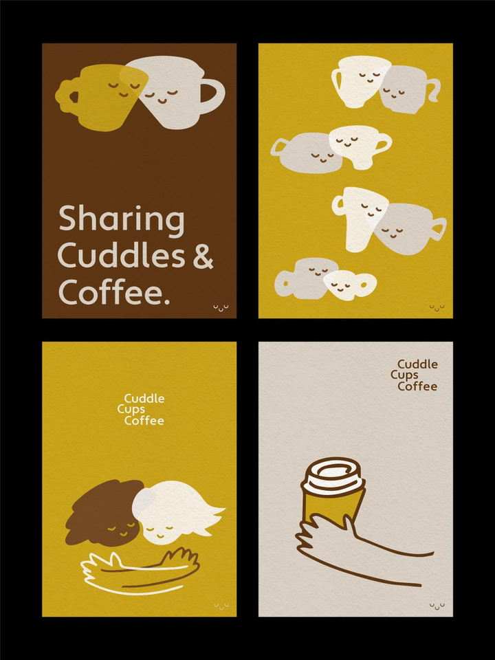 #Cuddle #Warm #Relax #Community 温もりのある交流をコーヒー体験に取り入れることを目指したコミュニティカフェのブランディング。コンセプトが「Sharing Cuddles & Coffee」。店名の三つのCを回転させて形成した笑顔が、ロゴおよびビジュアルシンボルとします。寄り添い合う器具・食べ物・人々のイラストで、リラックスした雰囲気を演出。