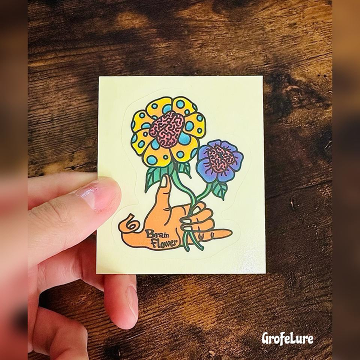 🧠Brain Flower🌼 クリアステッカー(防水) ¥500- オンラインにて販売中。 https://www.grofelure.com/ 公式 LINE・DMでのご購入も可能です🙇♀️🙏🌿 #grofelure #グルフィルア #BrainFlower #プリントTシャツ #刺繍 #embroidery #オリジナル刺繍 #ワッペン #パッチ #patch #original #japan #日本 #青森 #aomori #三沢 #misawa #六戸 #十和田 #八戸 #五戸 #東北 #GroFeLureミシン #COMFORTCOLORS #ステッカー #クリアステッカー #防水