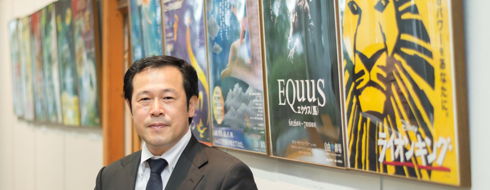 現場で迎えてくれたのは、専務取締役(営業・広報宣伝担当) の越智 幸紀(おち こうき)さんです。「演劇」にかける深い思いと、「劇団四季」の魅力をたっぷりと伺ってきました。