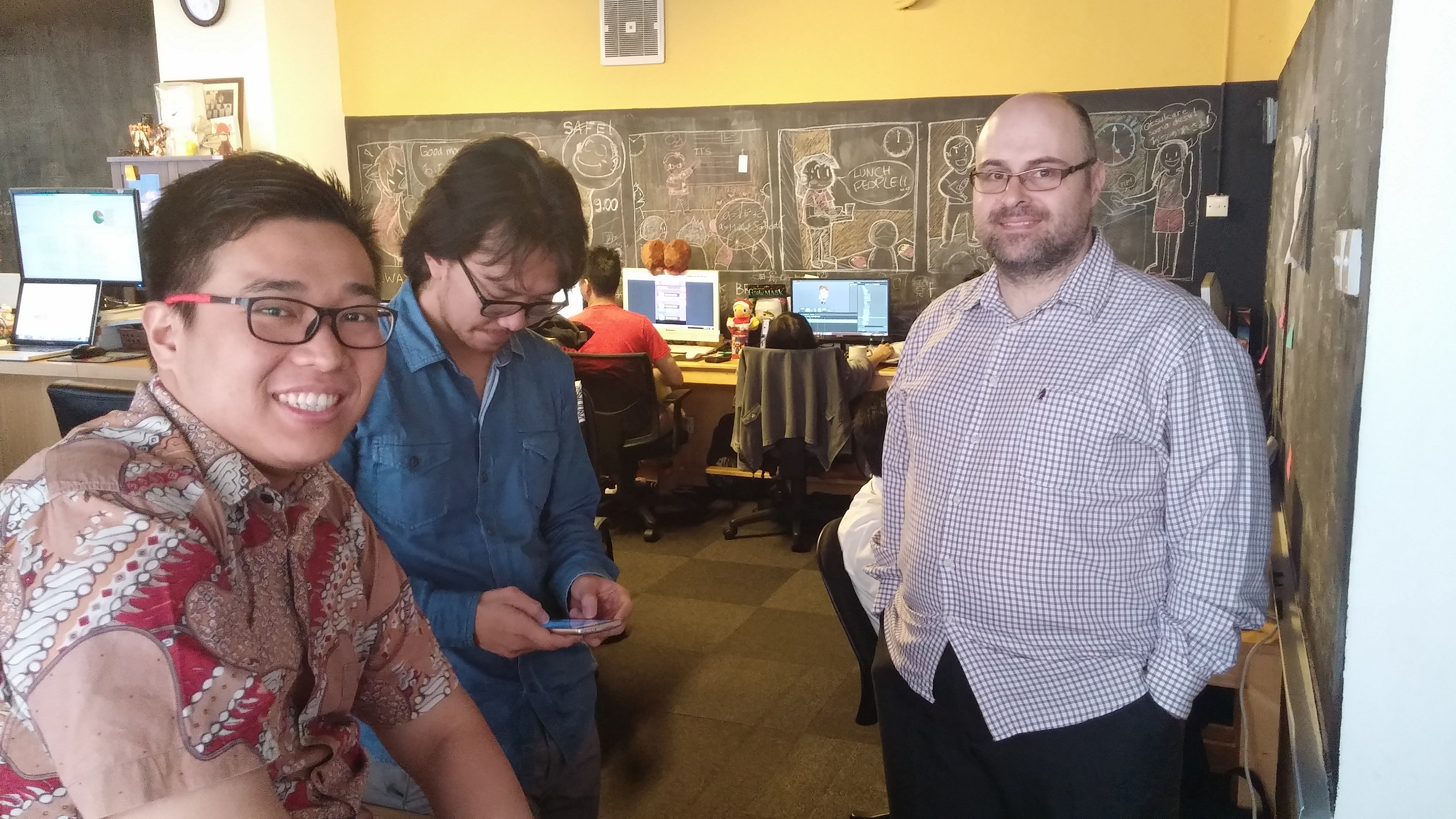 Walaupun saya juga mendapatkan tawaran wawancara di perusahaan animasi, saya ingin masuk ke perusahaan game. Di saat itu, saya hanya melihat sosok Anton dan Dede, dua orang yang sangat berbeda. Anton kenal semua orang, sedangkan Dede sangatlah teknis.