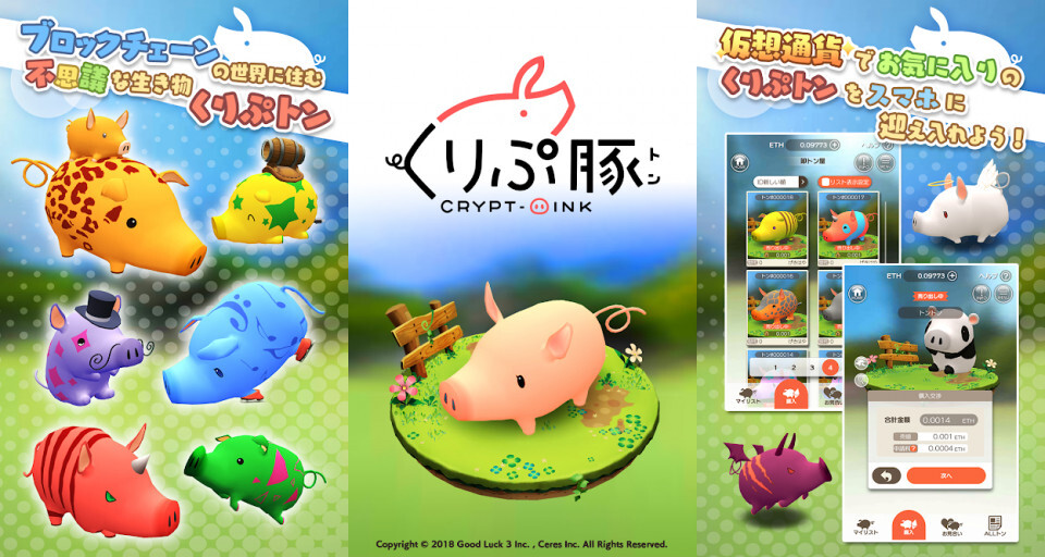 イーサリアムのブロックチェーン上で遊べる、国内初のスマートフォン向け新作ゲームアプリ『くりぷ豚(トン)(Crypt-Oink)』。