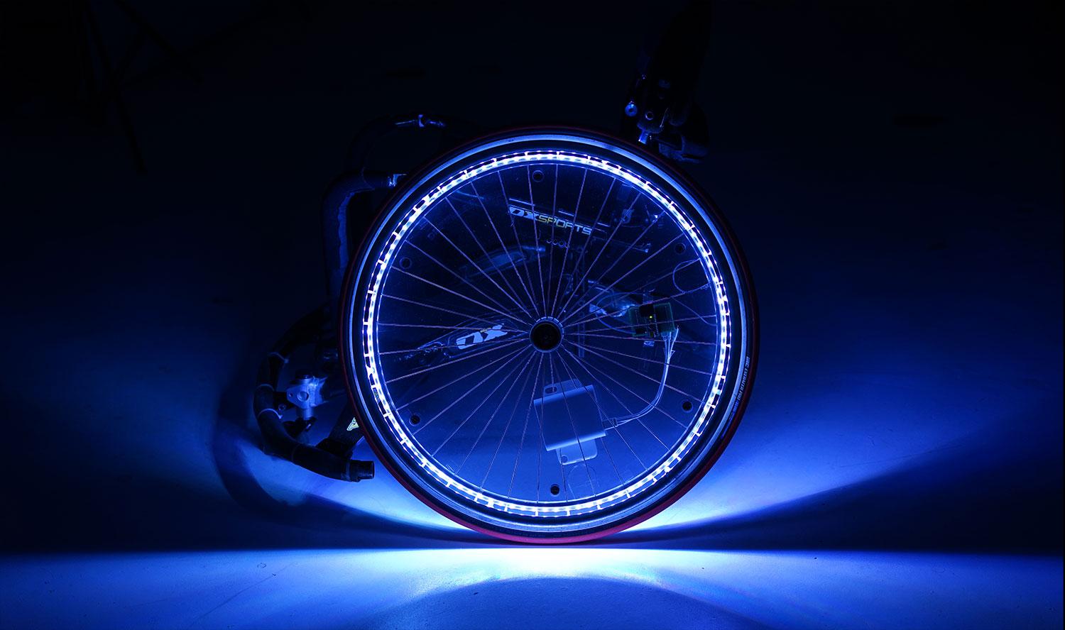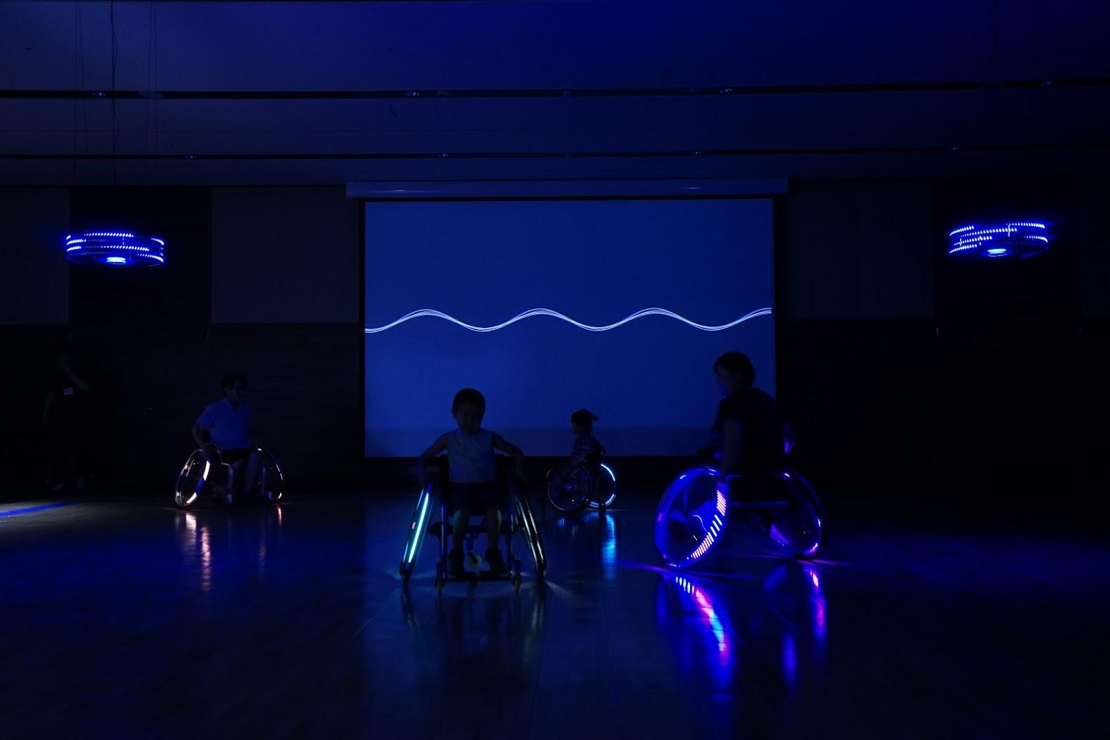 「PLAY THE WHEELS 音をかなでるクルマイス」は、Chiba City Media Art Projectによる、音と光の体験型のインスタレーション。LEDやスピーカー、センサーなどを繋げた競技用の車椅子のホイールを回転させると、体験者の動きに合わせて音をかなでることができます。スポーツを“PLAY”するための車椅子で、音楽を“PLAY”できるようにすることで、より多くの人に競技用車椅子に乗る楽しさを感じてもらえたらと考えて企画・制作をしました。