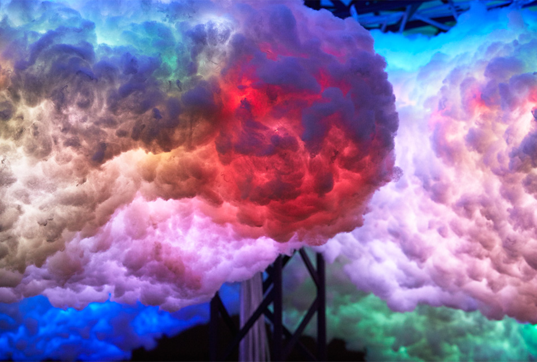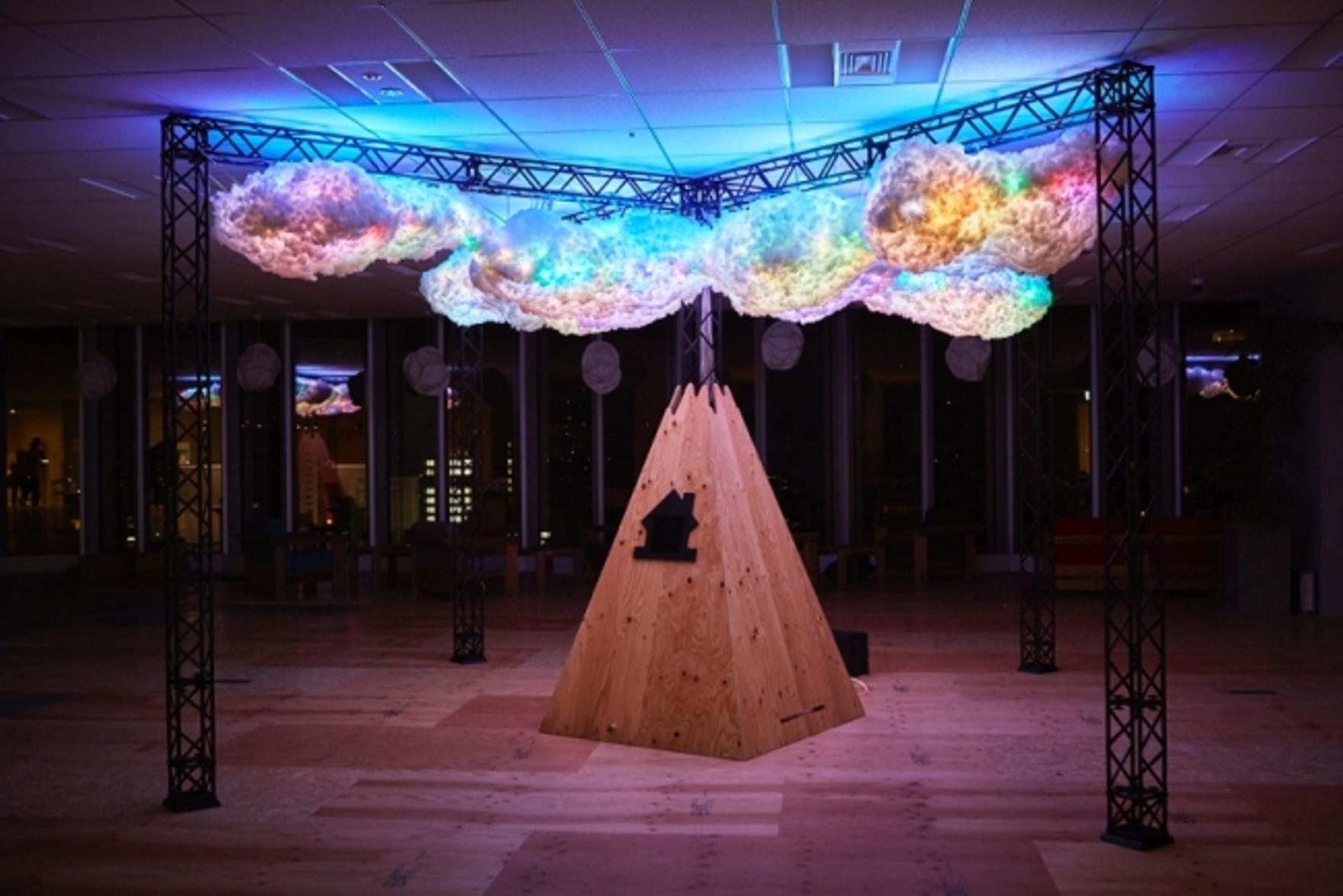 Yahoo! JAPANの開設するコワーキングスペース「LODGE」に設置されたインタラクティブなイルミネーションオブジェ。