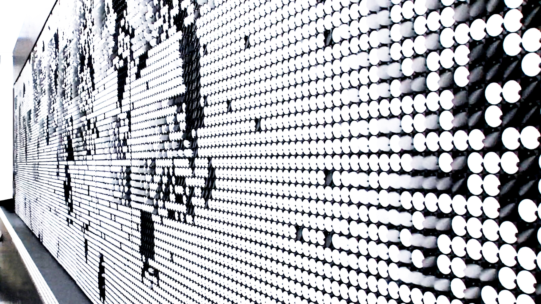 FLIP-DOTS(フリップドッツ) は、磁気で反転する複数のドットで構成されたアナログ感覚のデバイスです。一般的なディスプレイでは味わえない、音と視覚効果を作り出すことができます。