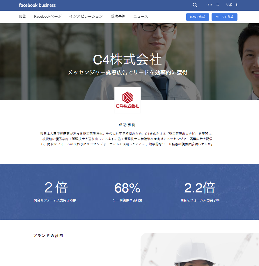 Facebook広告 成功事例ページ:https://www.facebook.com/business/success/c4-inc