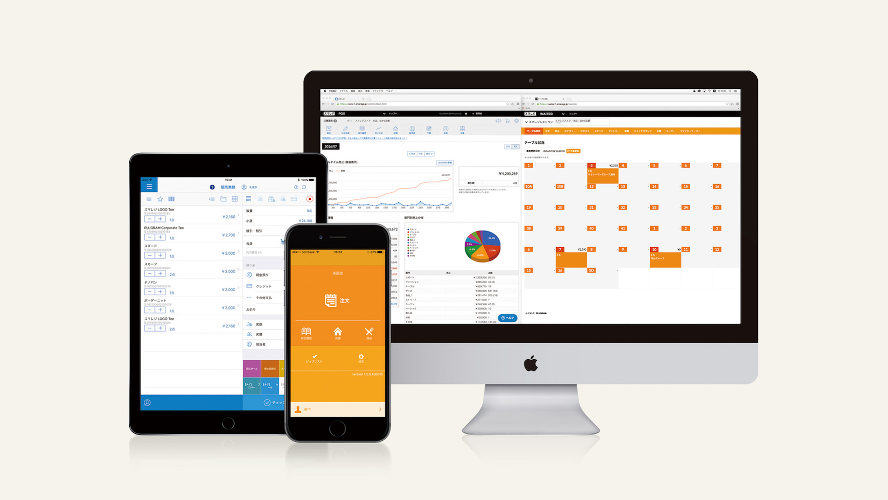 オーダーエントリーシステムの「ウェイター」と高機能タブレットPOS「スマレジ」を合わせて利用することで、オーダーエントリーシステムにPOS(スマレジ)が連携し、オーダーからお会計までの一連のワークフロー全てを円滑に行えます。データはクラウドに保存されるので、店舗状況の確認から売上分析・顧客管理まで、お店のあらゆるデータをどこからでもリアルタイムでチェックできます。スマレジで飲食店の売上のデータを簡単に管理・分析できます。