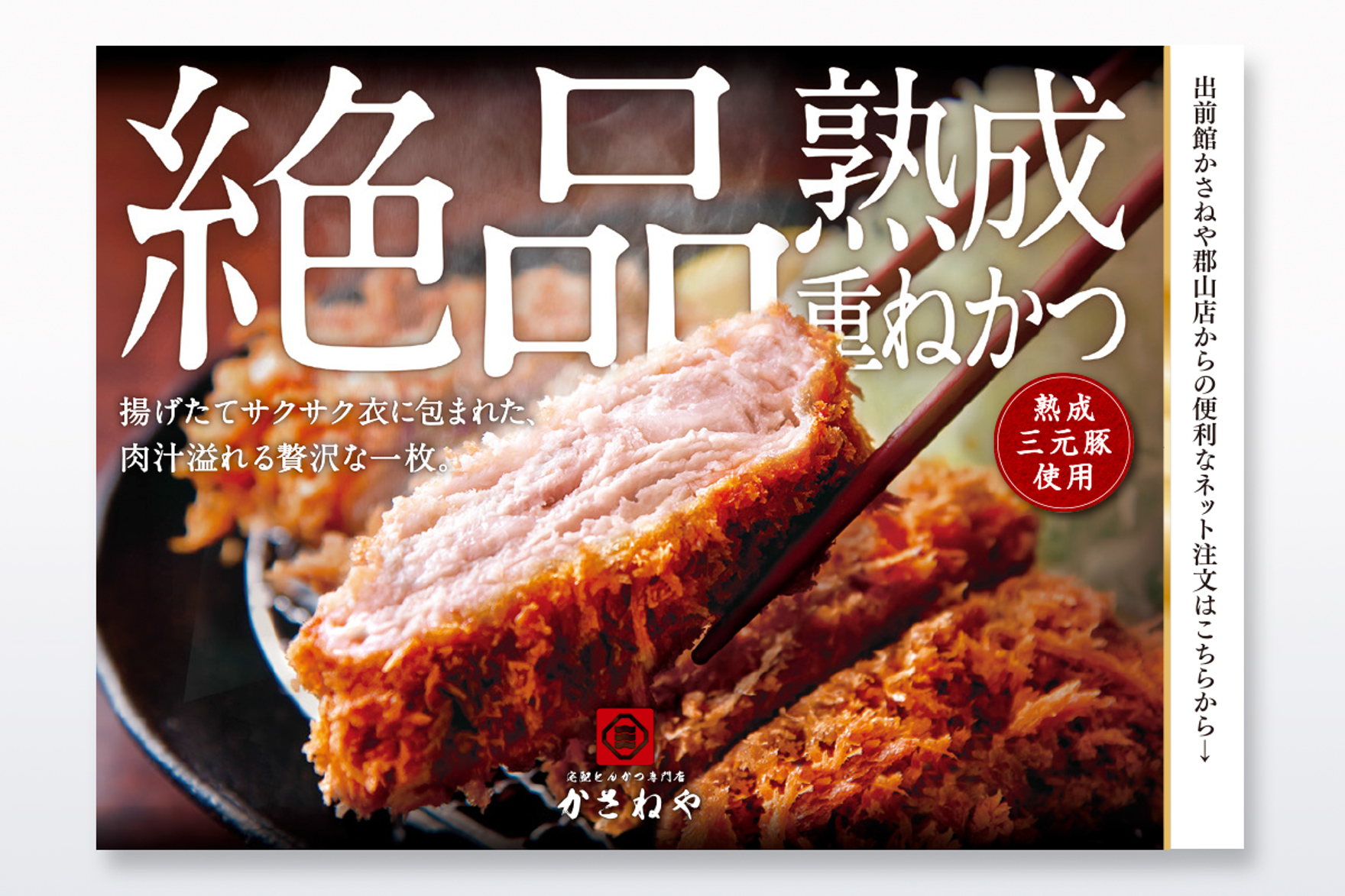 『宅配とんかつ専門店 かさねや』のデリバリー用チラシを制作しました。