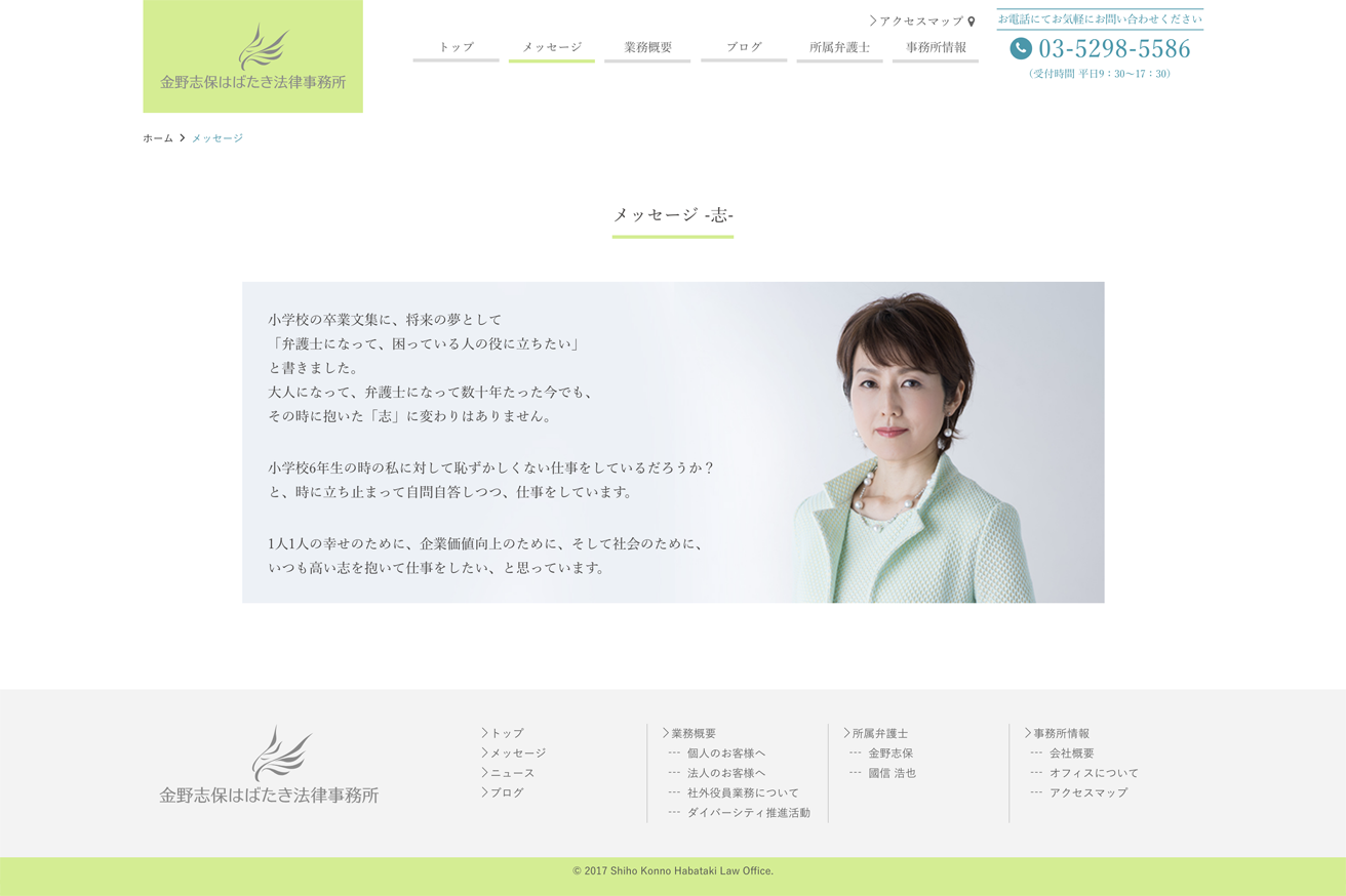 名だたる企業の監査役や社外取締役を務める金野志保 弁護士のWebサイトリニューアルを担当させていただきました。