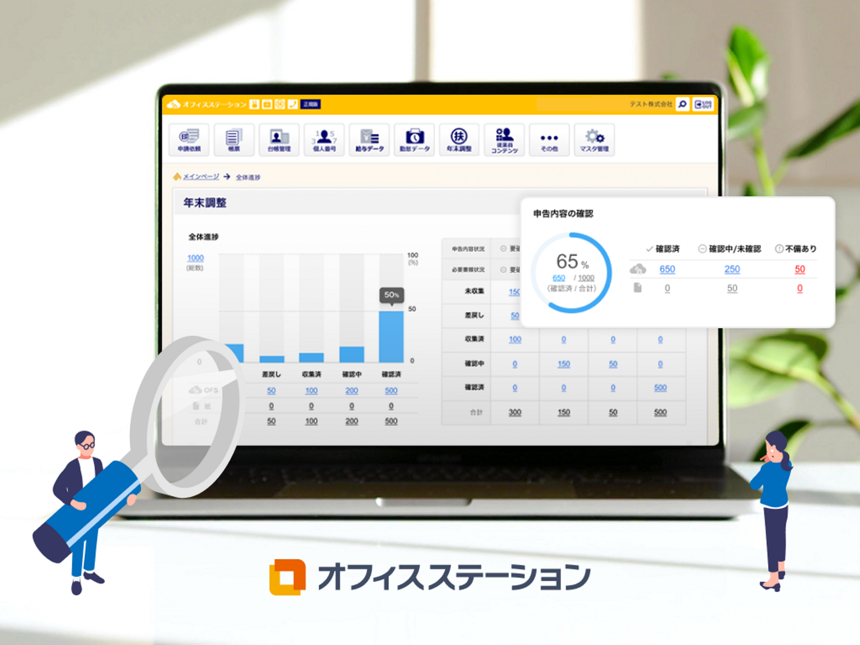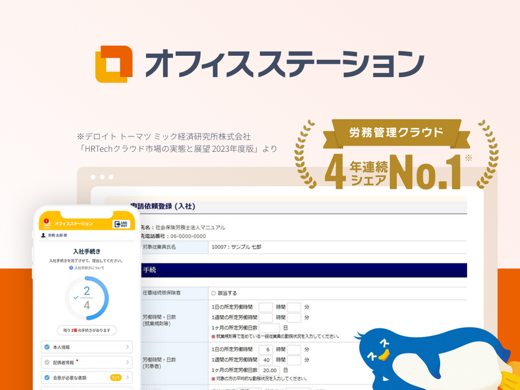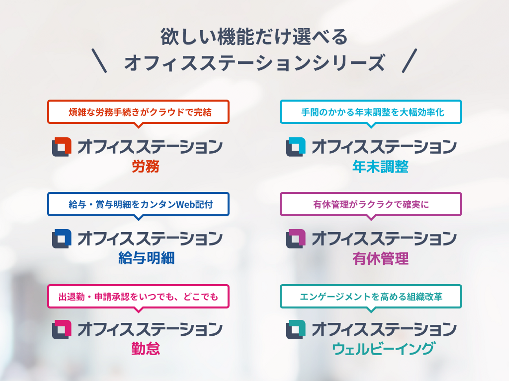 オフィスステーションは入退社、産休育休、労災などの社内・行政手続きや年末調整など、