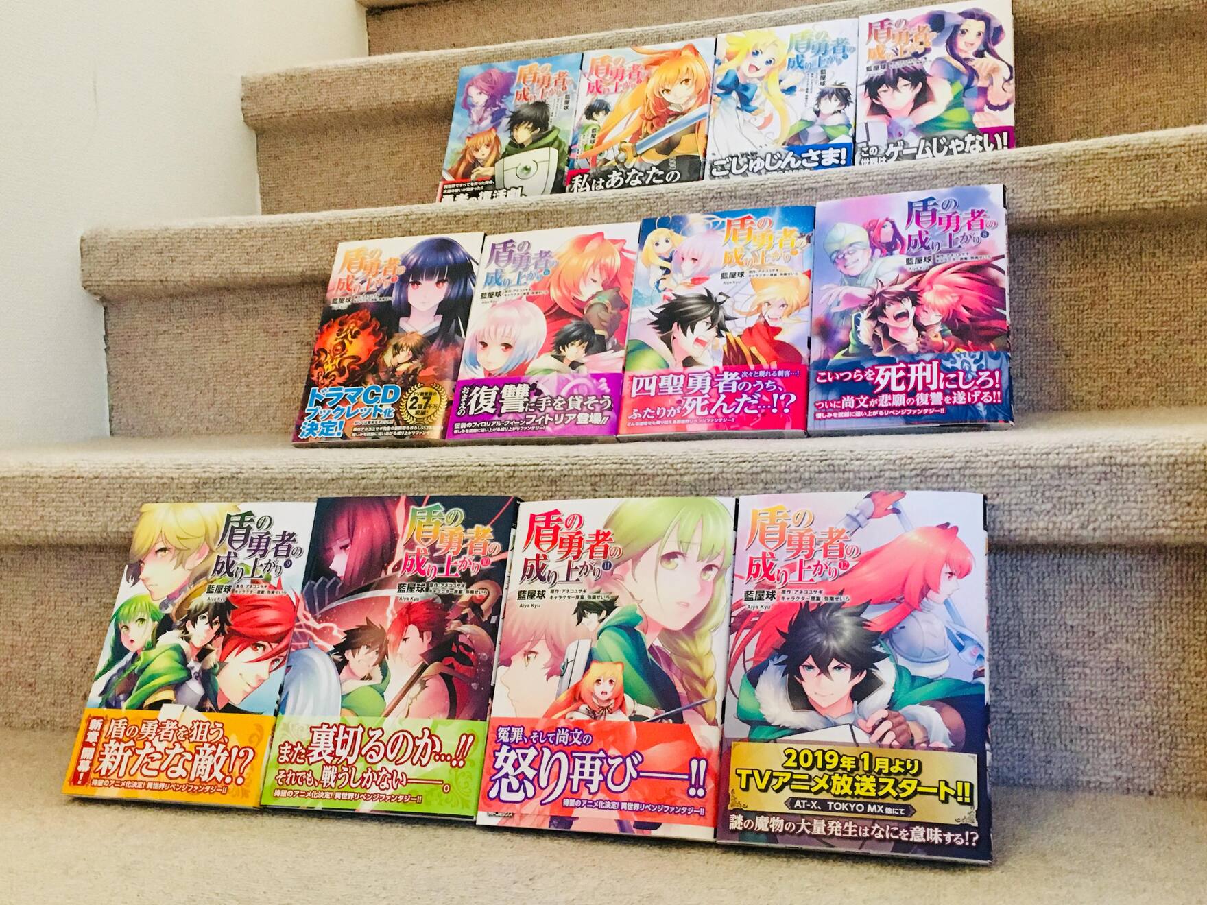 スピンオフやCDブック、アンソロジーに留まらず2019年1月期よりアニメもスタートし、益々の広がりを見せる『盾の勇者の成り上がり』シリーズ。MFブックス創刊当初からのタイトルであり、中面本文のフォーマットを含め装丁一式を担当させていただきました。主役はあくまで物語であり、またその物語に一層の彩りを添えるイラストレーター様の素晴らしいイラストですので、それらを引き立たせたうえで尚且つ邪魔にならないよう心がけております。ロゴは、物語の核のひとつである盾をモチーフといたしました。原作シリーズは21巻、コミカライズも12巻と巻数も重ねてまいりましたので(どちらも2019年2月現在)、他の巻となるべく被らずにイラストの色彩に調和するようロゴ色は各巻変えております。
