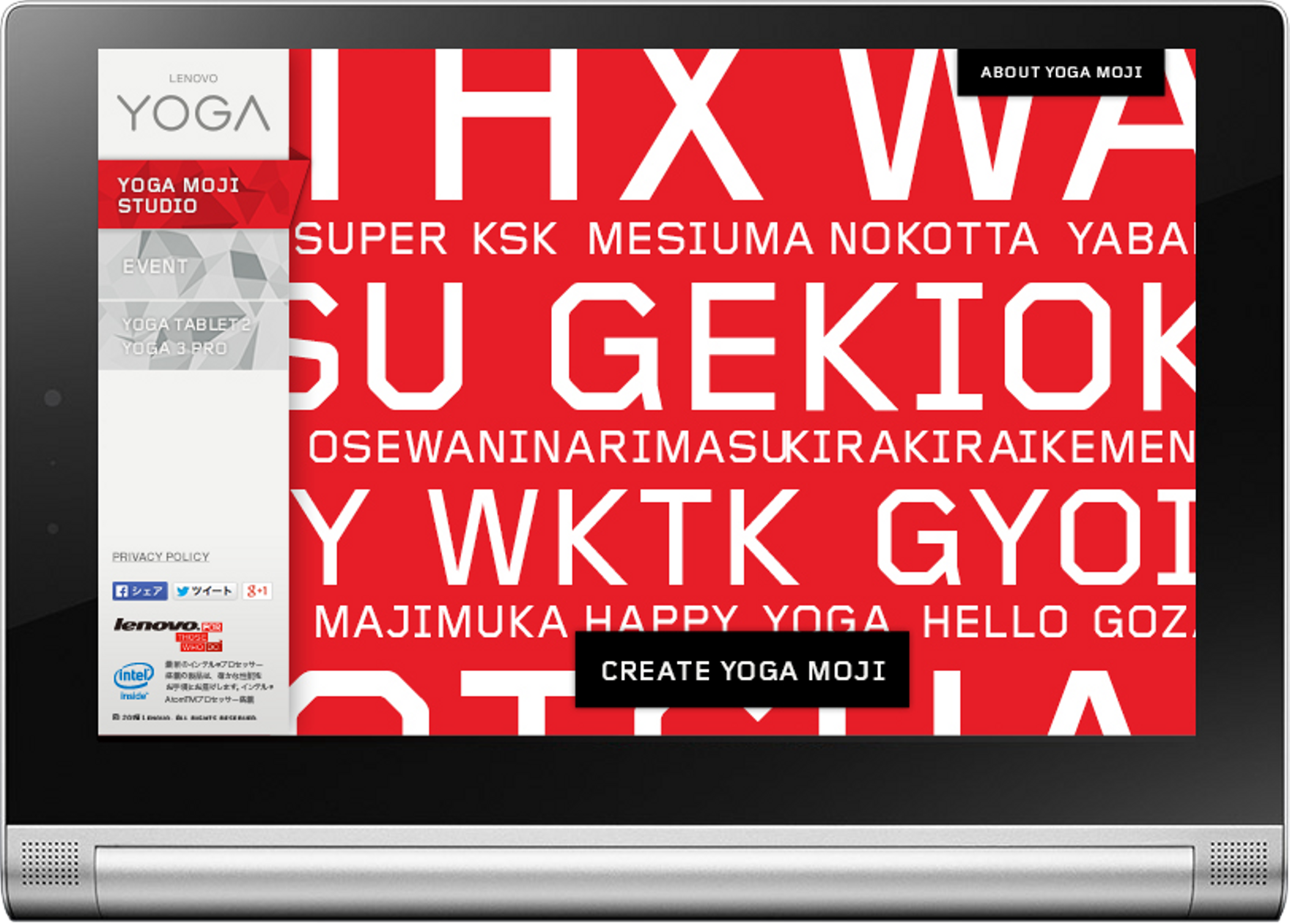 また、リアルイベントは、2014/11/29(日) に YOGA RAVE、2015/3/14(土)・3/15(日) に ELECTRIC RUN を実施。その場で作成された自分だけの YOGO MOJI は、サイトで閲覧・使用できるだけでなく、オリジナルシールとしても配布しました。合計で1000人近くのユーザーが YOGO MOJI を作成し、楽しみながら使っていただきました。