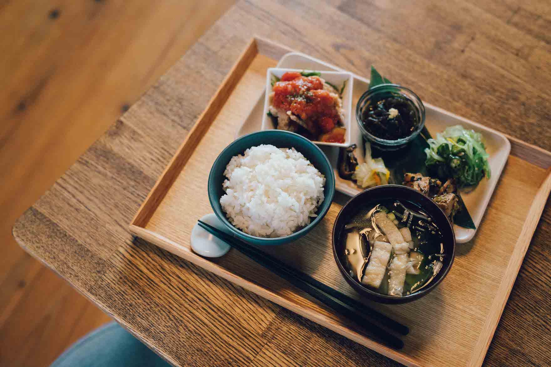 惣菜が盛り合わされた日替わりの定食は子供からお年寄りまで、