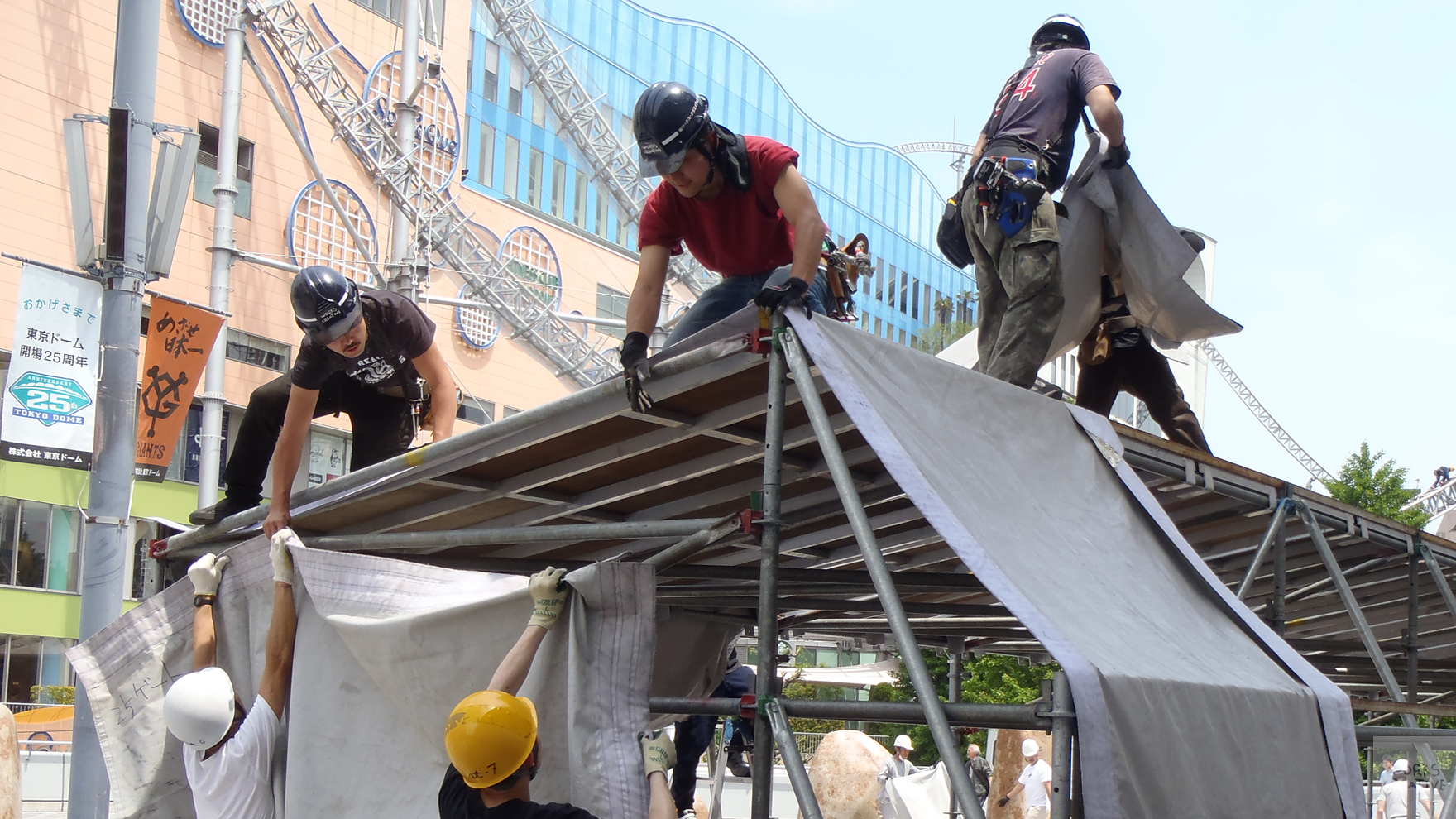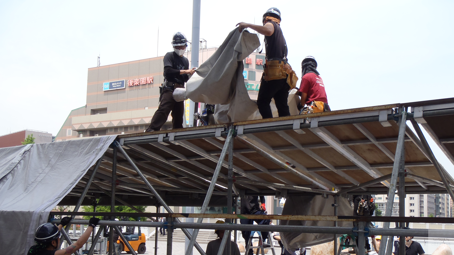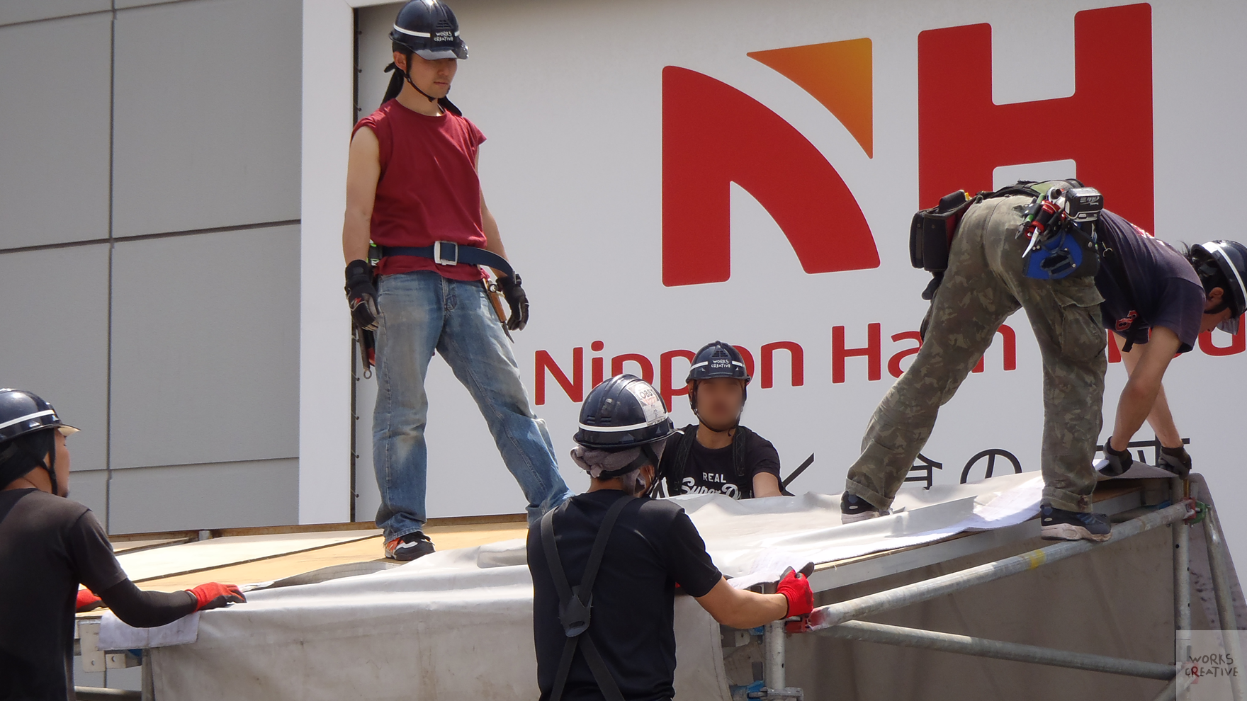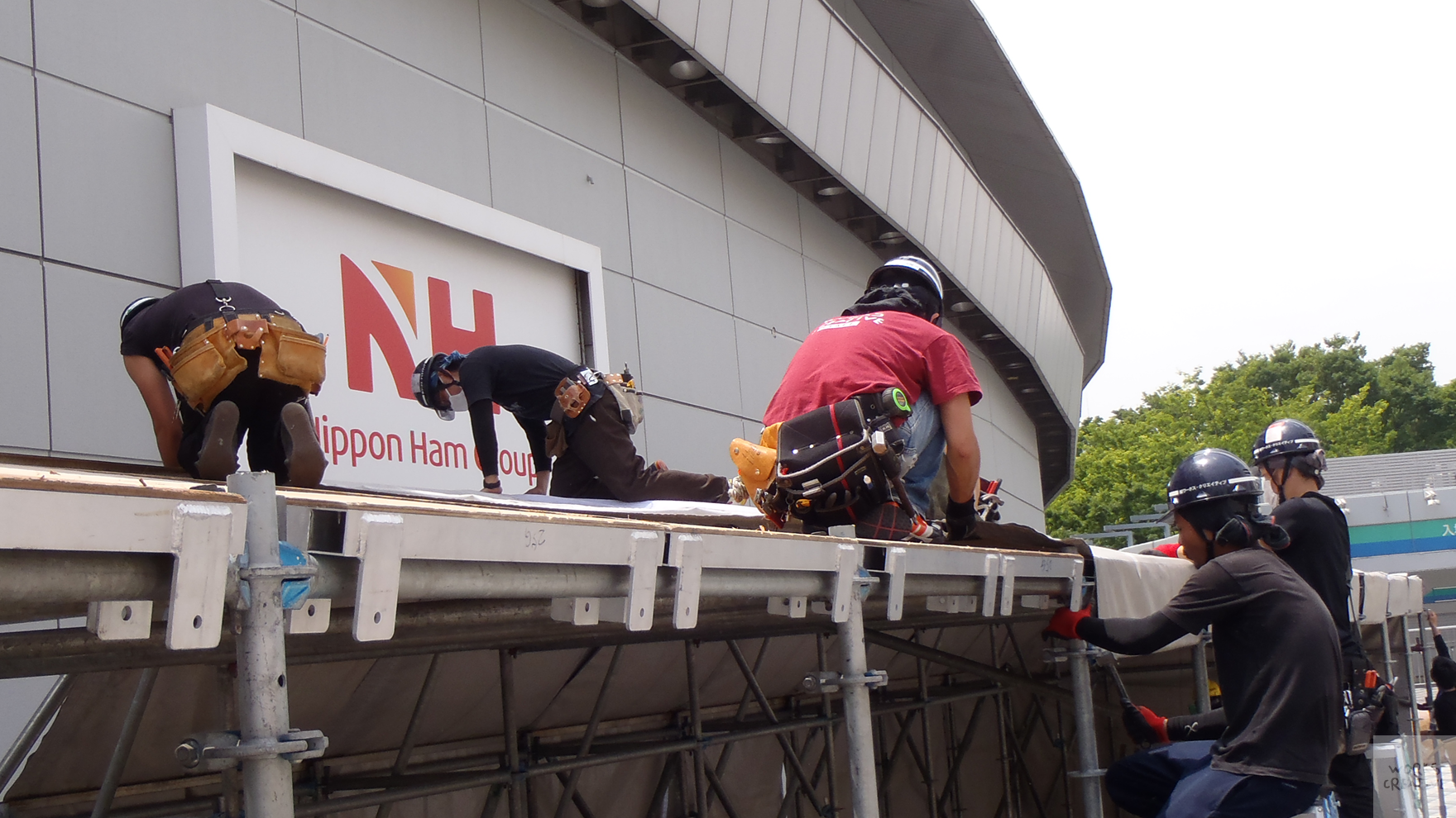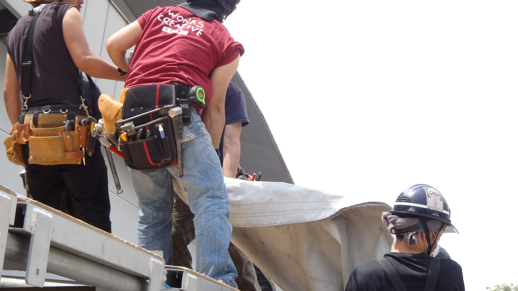 屋外イベントに合わせて、野外テントの設営を行っています。