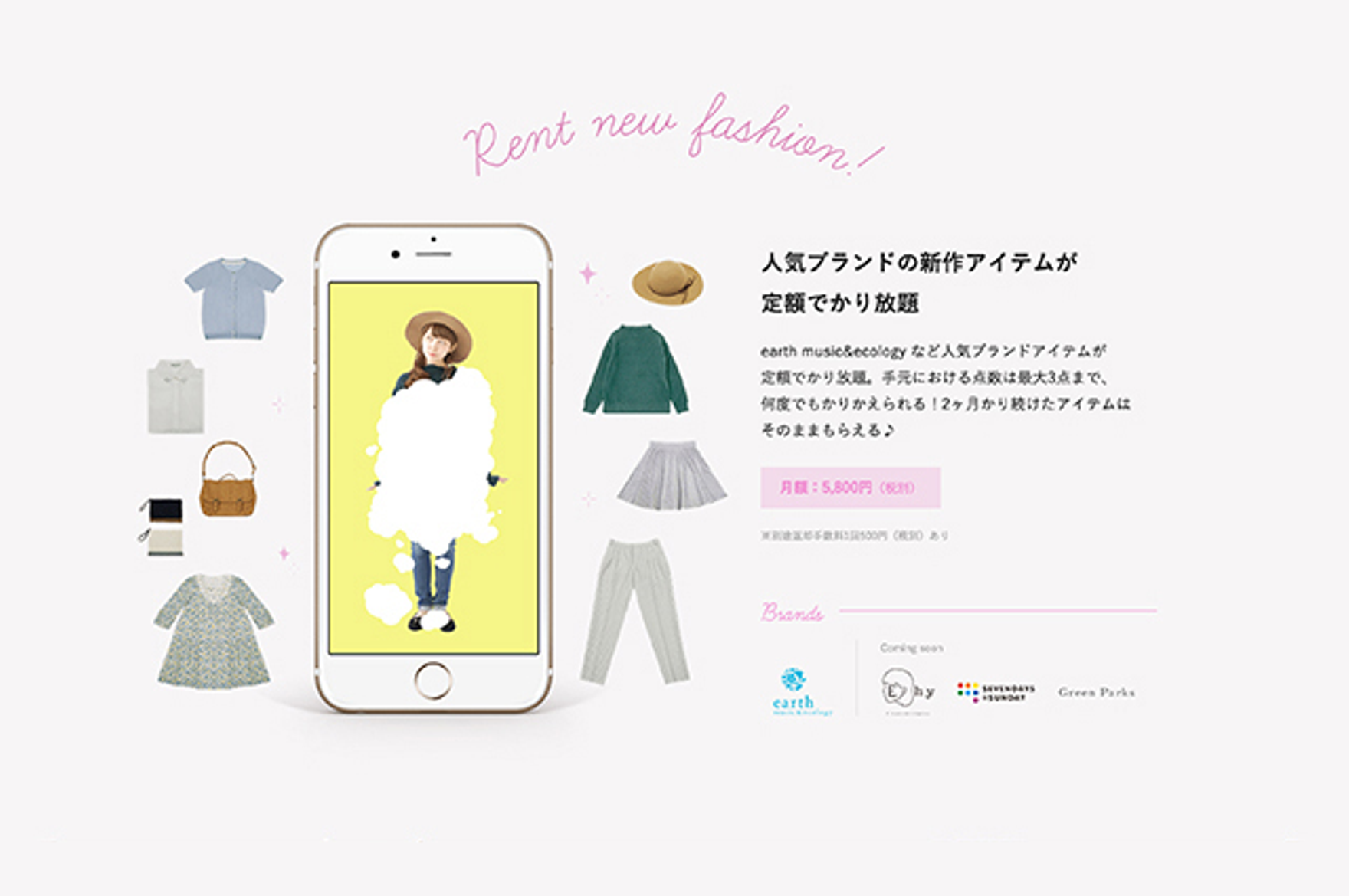 株式会社クロスカンパニーが提供する新サービス「ファッションレンタル メチャカリ(※1)」用のシステム及び専用アプリを企画・制作を担当しました。人気ブランド「earth music&ecology」などの新品アイテムを、専用アプリを通して定額でかりることができます。