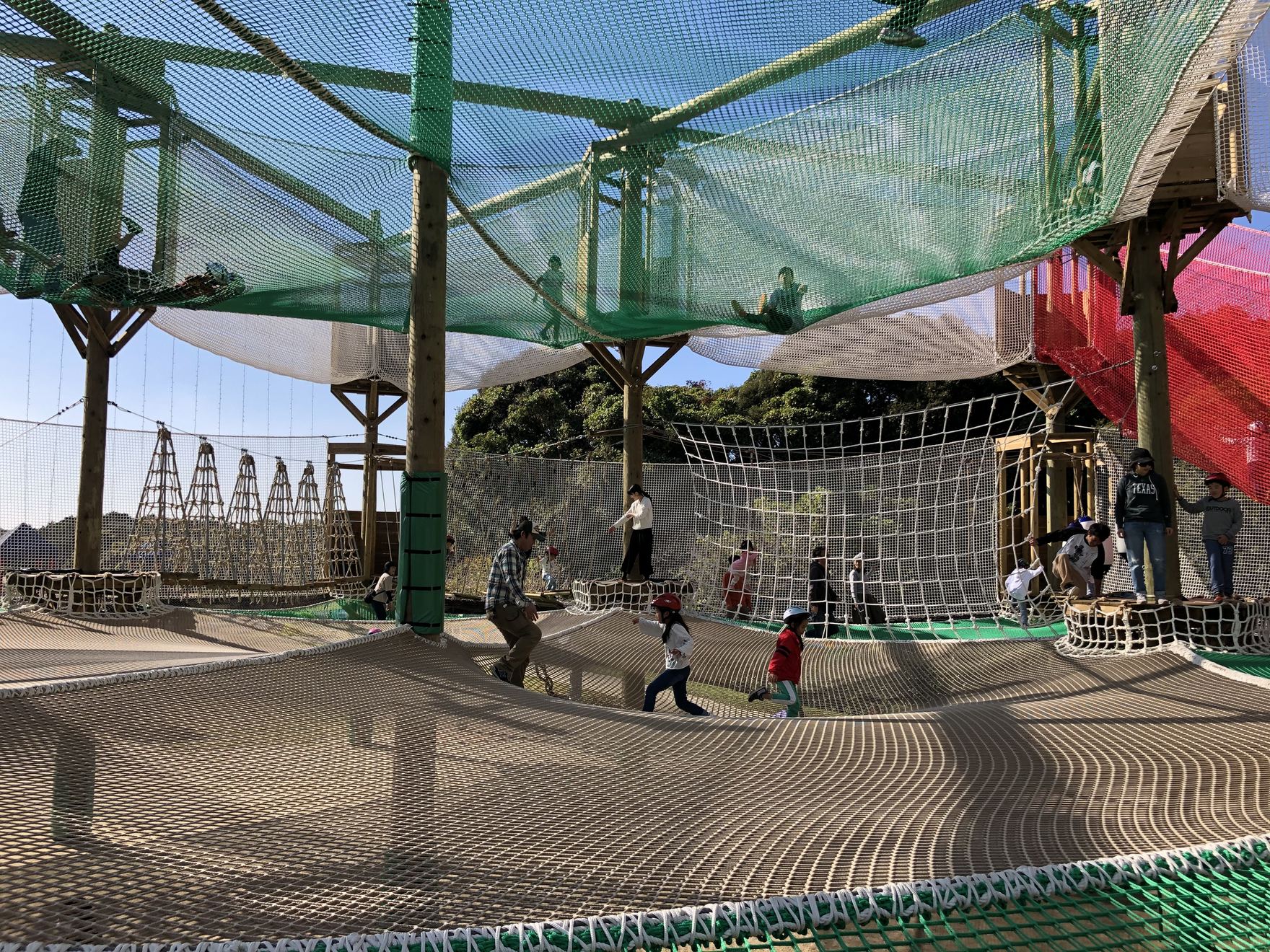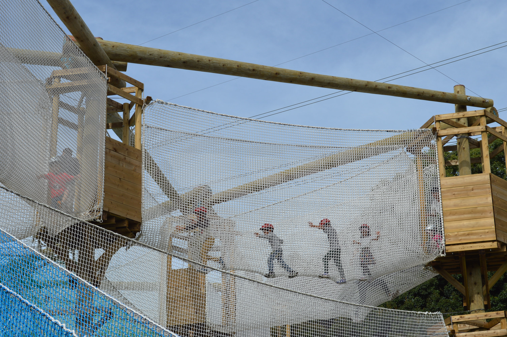 2層目はネットの回廊になっているので、地上7mの高さをゆっくりと楽しむことができます。また中央に設置しているネットエリアでトランポリンのように遊ぶことができます。