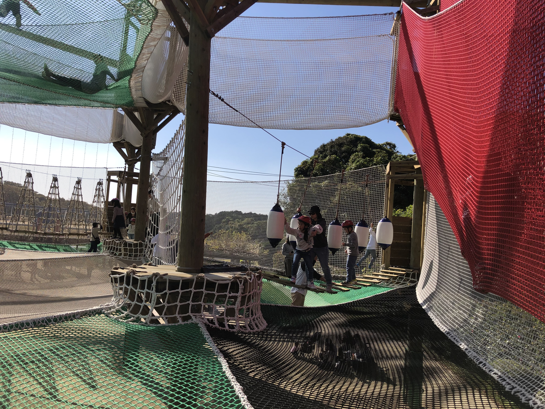 外周は約84m。2層構造になっていて、1層目と2層目を自由に行き来できます。1層目は地上3.5m、2層目は地上7mの景色を楽しみながら遊ぶことができます。