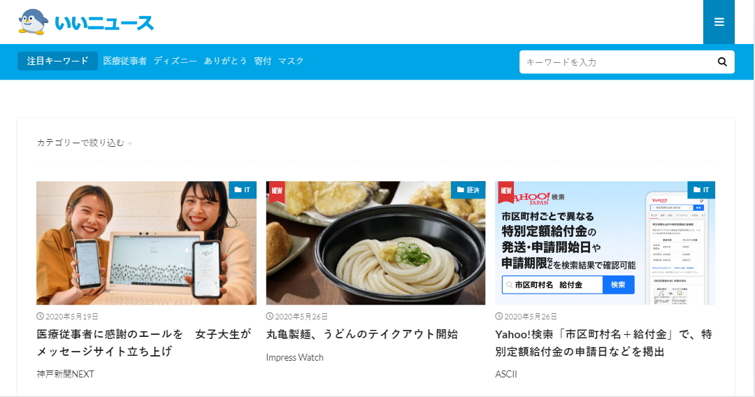 明るくなる「いいニュース」ばかりをおしらせします!って感じのニュースキュレーションサービスです!