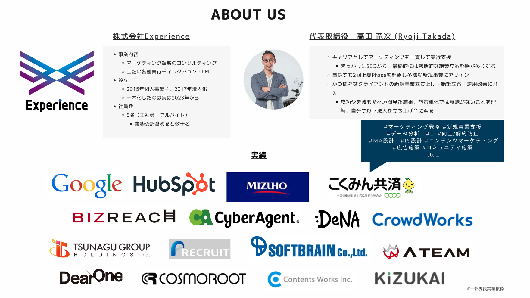クライアントのコンサルティングやPMOの実績です。一部抜粋。