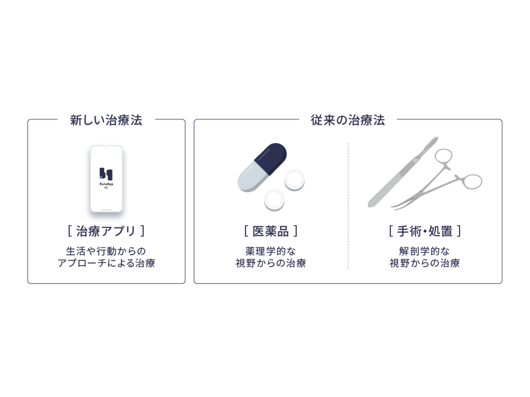 CureAppは、従来の医薬品やハードウェア医療機器では治療効果が不十分だった病気を治すために、医学的エビデンスに基づいた医療機器プログラム『治療アプリ』を開発しています。