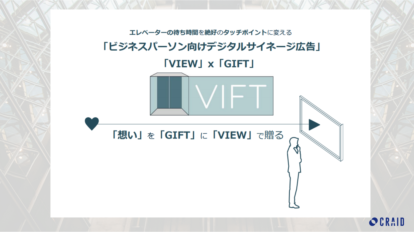 「ビジネスパーソン向けデジタルサイネージ広告」"VIFT"。