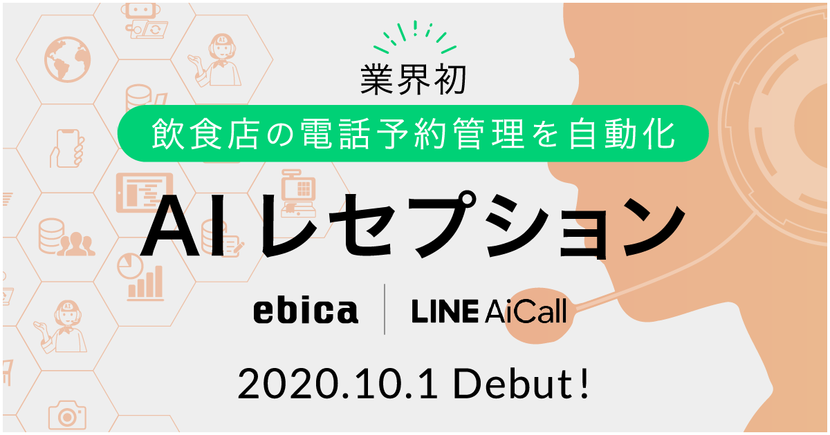 エビソルではこの度、「ひとにやさしいAI 」を目指すLINE株式会社の「LINE AiCall」と協働して、AI電話予約応対サービス「AIレセプション」を、2020年10月1日より提供いたします。2019年11月より実用化に向けた実証実験を行い、1年間の開発期間を経て本稼働となります。