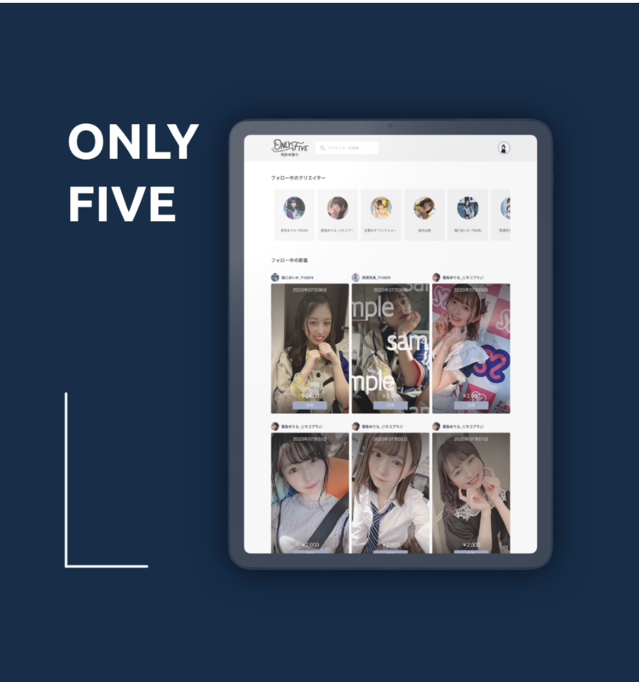 ONLY FIVEはアイドルやモデルなどのタレントが投稿した写真を先着5名だけ購入することができるサービスです。