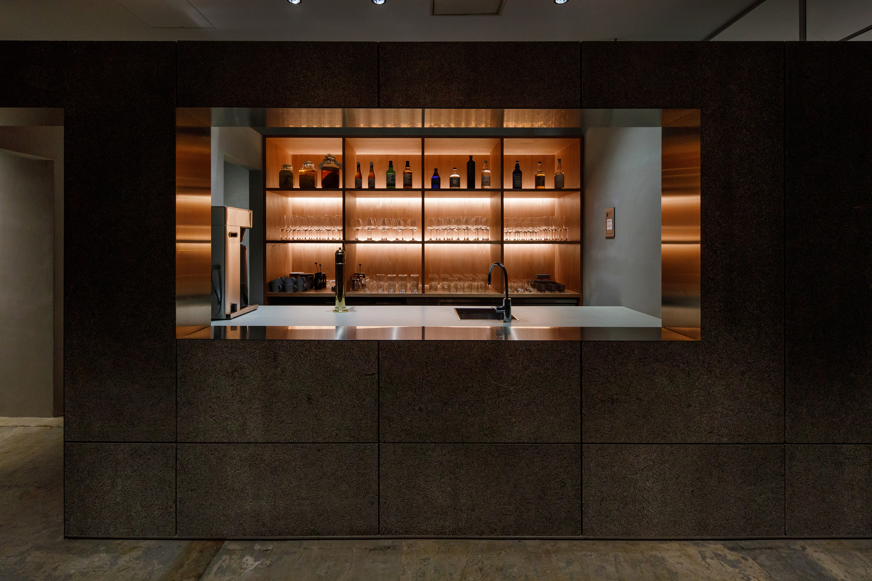 百貨店の大規模リノベーションによる飲食店プロジェクトです。2店舗同時出店によるオペレーションコストを削減するため、両店舗のあいだにスタッフ動線とバックヤードを集約し、効率的な平面計画としました。