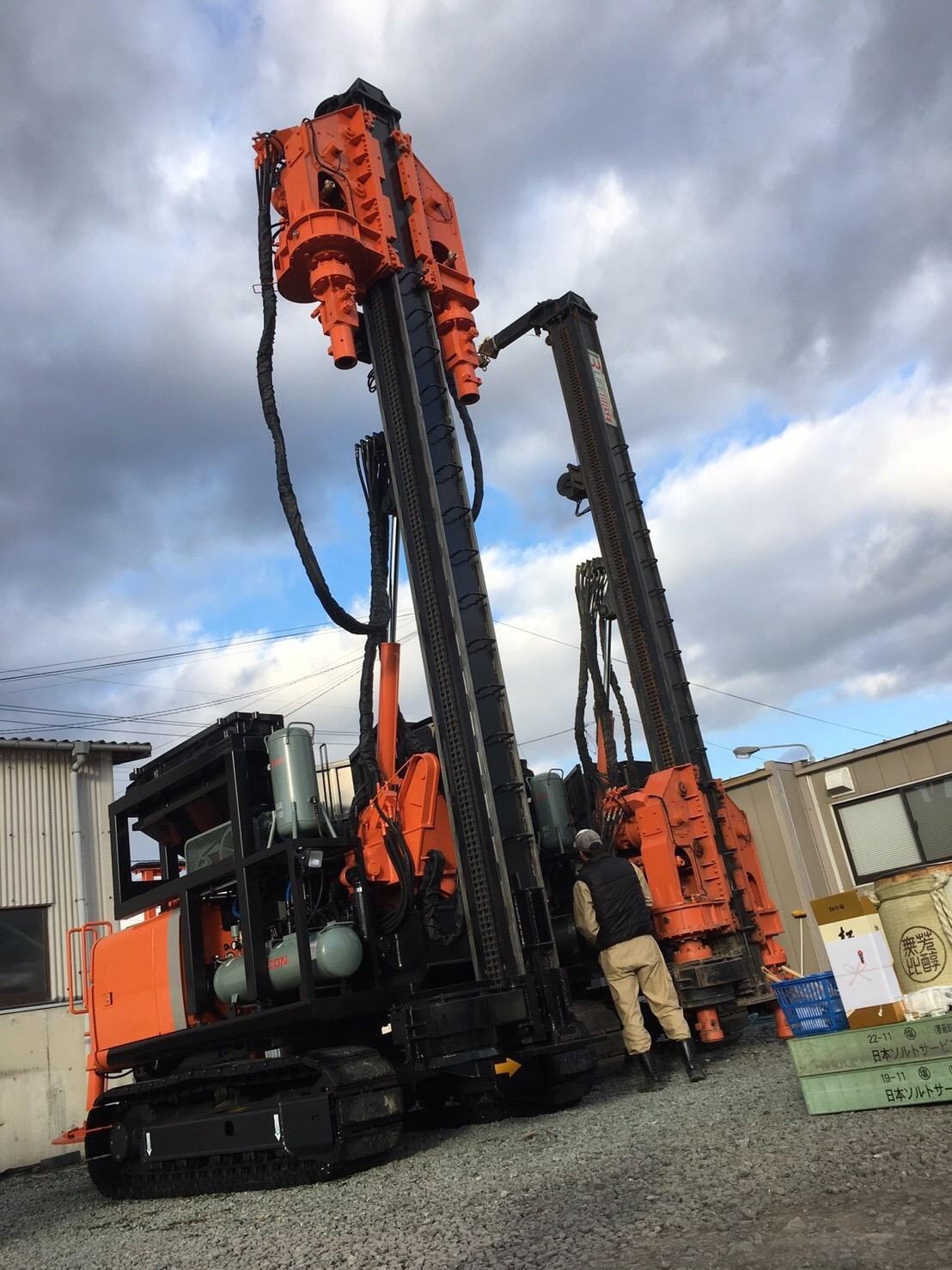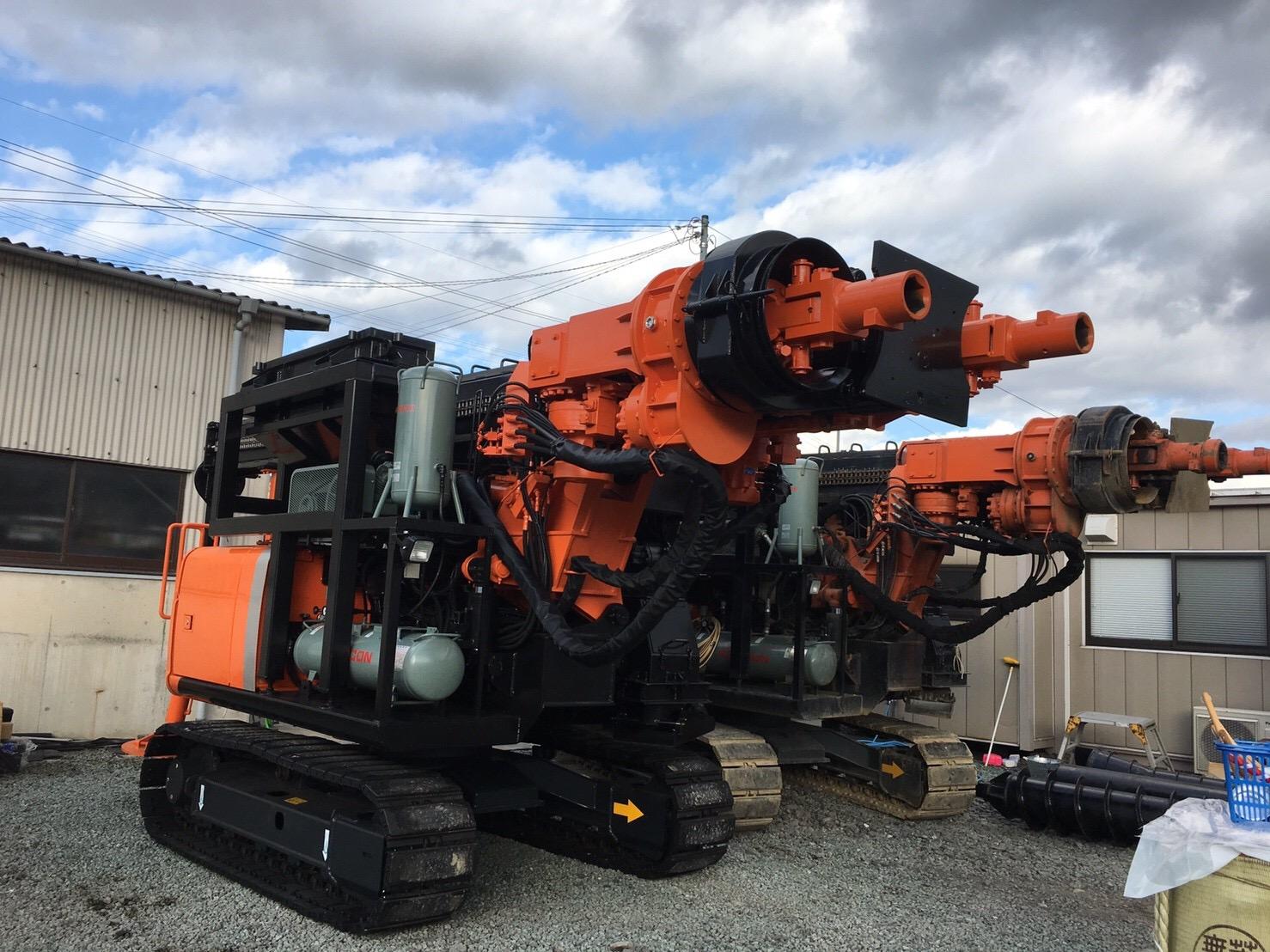 先進の砕石地盤改良”スクリュープレス工法”の専用マシン、2台目導入の様子です。
