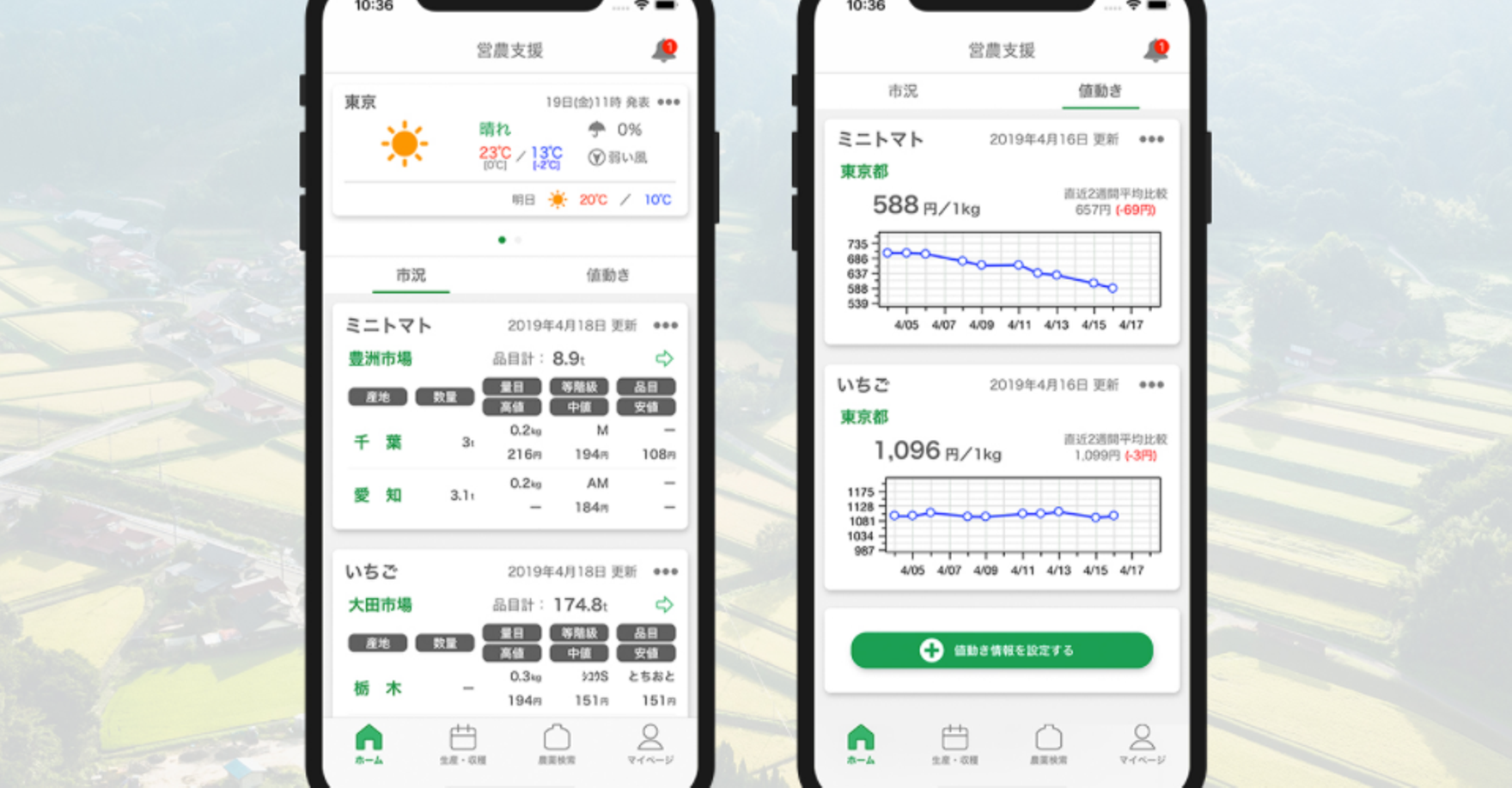 気象情報、市況情報、農薬情報を閲覧できる、スマートフォン向けアプリです。