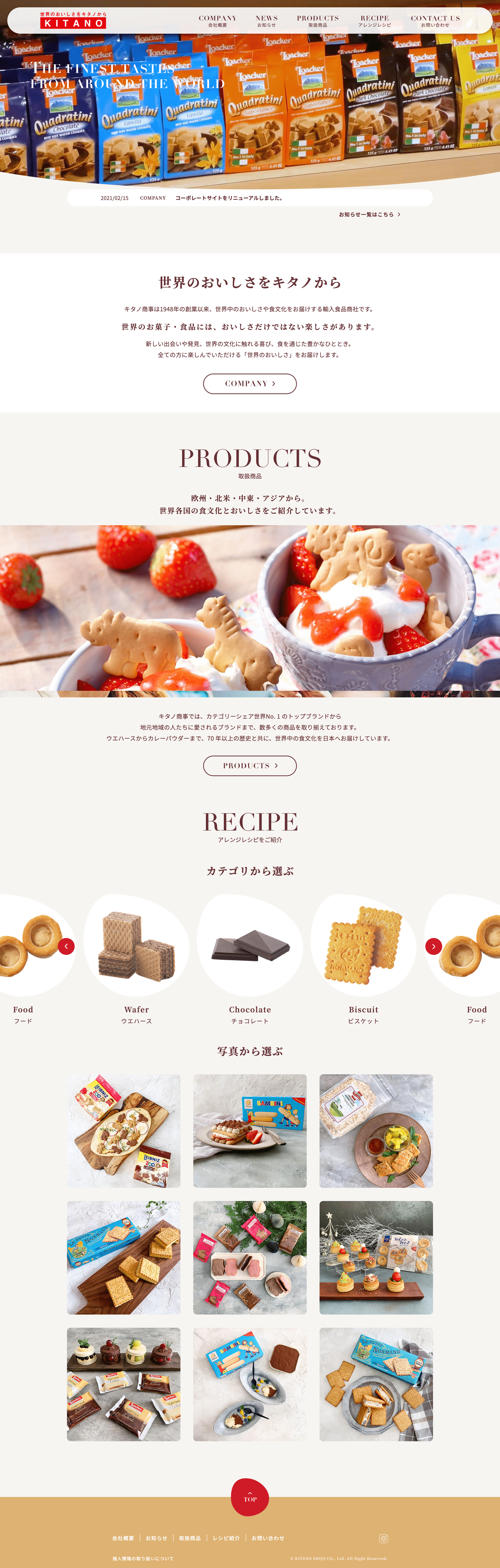 KALDIコーヒーをはじめとしする輸入食品店などで販売されているウエハース「Loacker」などの正規輸入販売元である株式会社キタノ商事様のコーポレートサイトを担当させていただきました。