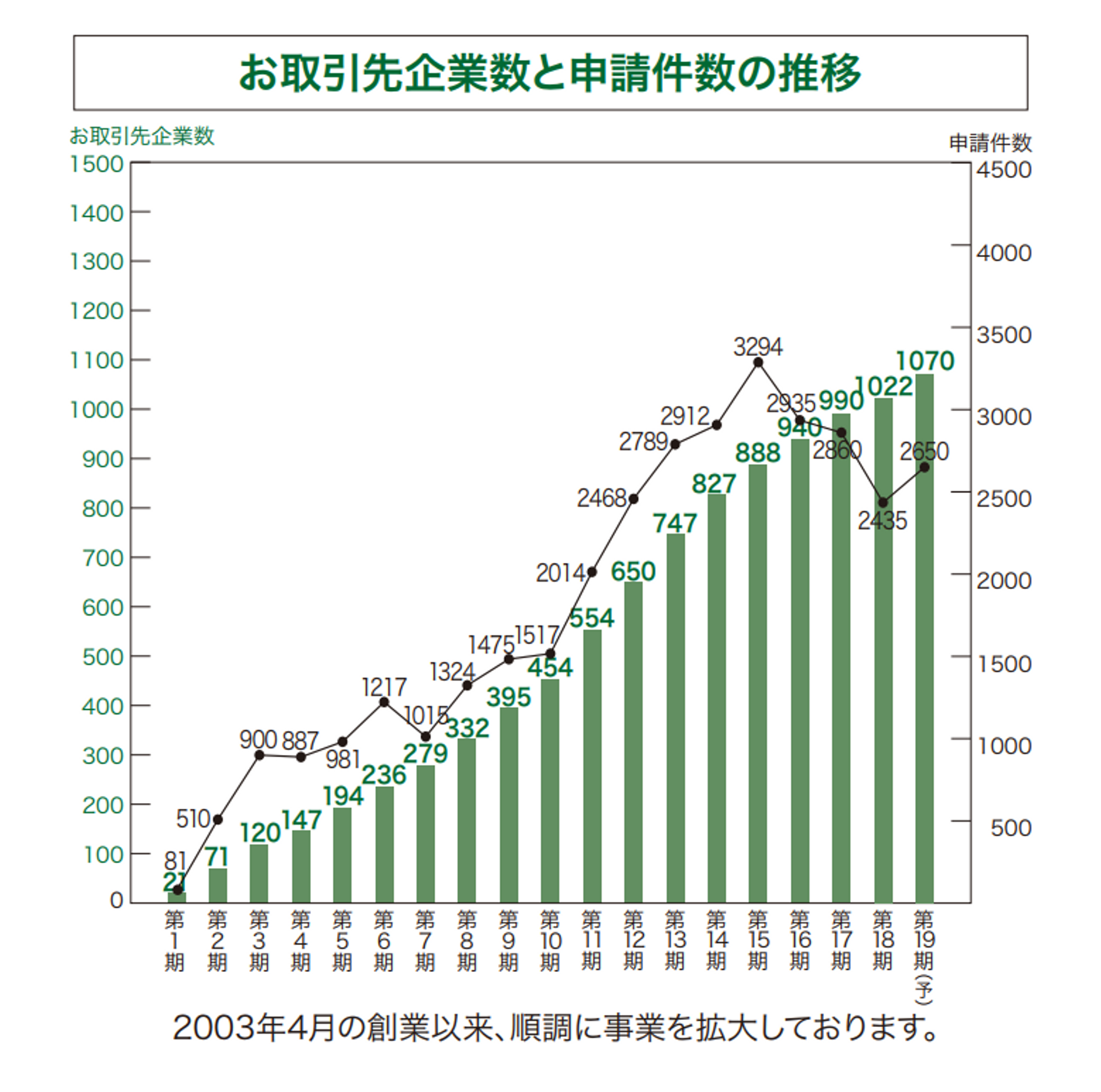 お取引先企業数と申請件数の推移