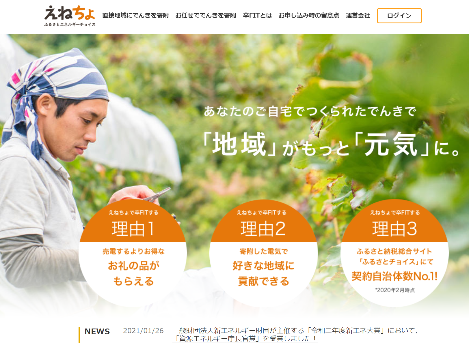 エネルギー事業部でサービス展開している「えねちょ」が「新エネ大賞」を受賞しました。