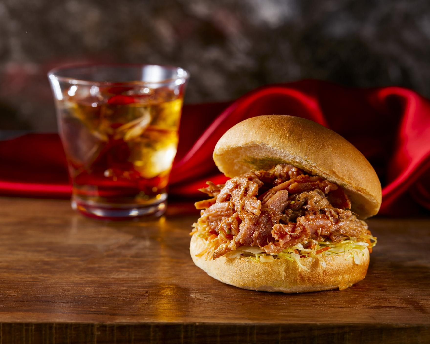 BBQの本場アメリカのソウルフード ”プルドポーク” 豚の”塊肉”をじっくり煮込み、細かくほぐして(Pulled)燻製香る特性ソースに絡めました。 シャキシャキきゃべつとほろほろお肉の組み合わせは間違えなし!! バンズに挟んでも良し、トルティーヤで巻いても良し、お好みの食べ方でお楽しみ下さい♪