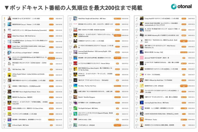 ■ 最新の人気ポッドキャスト番組のランキングを最大200件表示