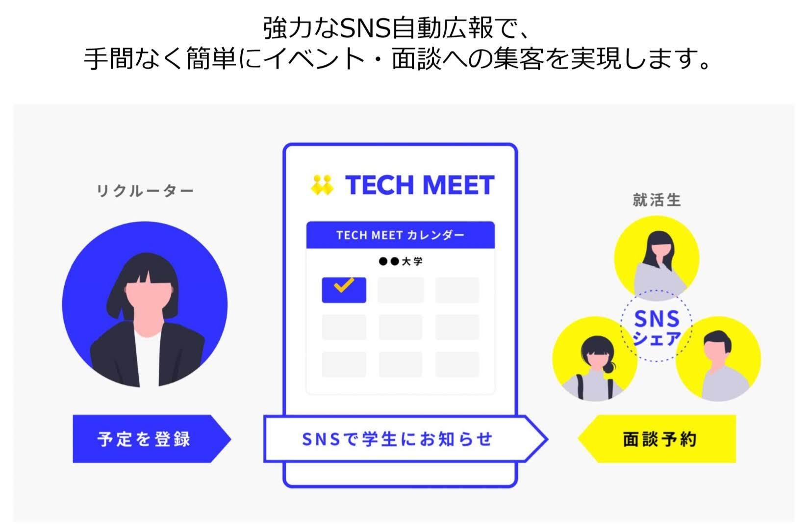 ワンボタンで人事担当者の方や企業のリクルーターと気軽に会えて、深く話せる新コンセプトサービス「TECH MEET」がOPENしました。