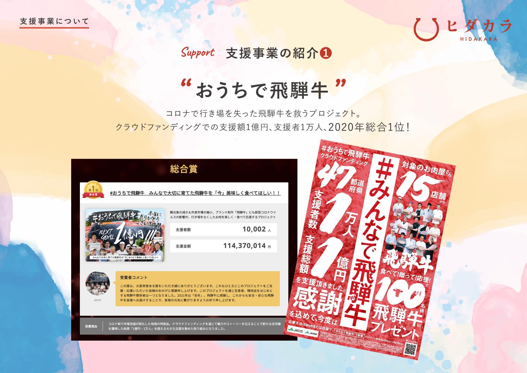 ヒダカラの特徴は、立案⇒制作⇒実施⇒振り返りのスピード感です。この1年で地域に密着した50以上のプロジェクトを実施してきました。